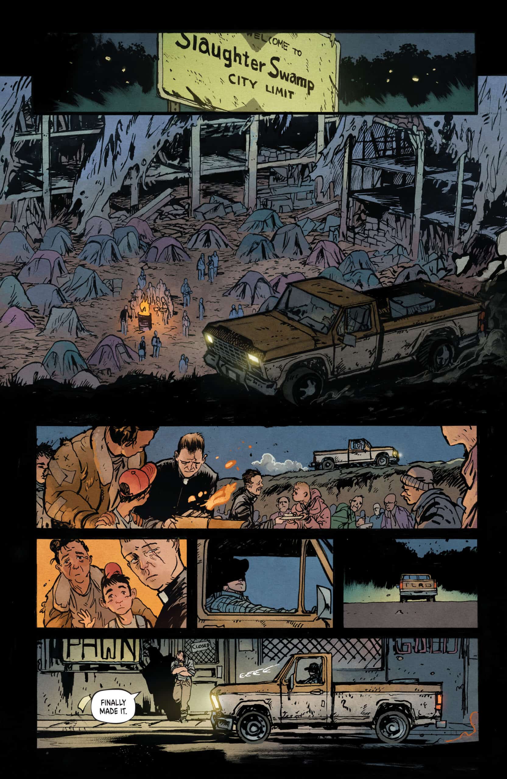 Daniel Warren Johnson was born to draw a lot of things, and Absolute Batman is certainly at the top of the list. Taking up the majority of this annual, Johnson’s art gives readers a fiery fever dream of Batman taking on a white supremacist group outside of Gotham. While doing the things that Batman can do is nearly impossible, the reality of this group is far too real. A priest who initially aids an injured Bruce Wayne, saying it best about the group’s leader. He tells Bruce, “I don’t know much about him, except that he’s been filling the holes in the hearts of our boys. Of all the men here, really. He’s given them a dark place to go.” The art is elevated by Mike Spicer’s bold coloring and embodies everything readers expect from their collaboration. Everything from the writing to the visuals carries a distinct blend of grit that feels uniquely suited to this impossible Batman facing very possible things.