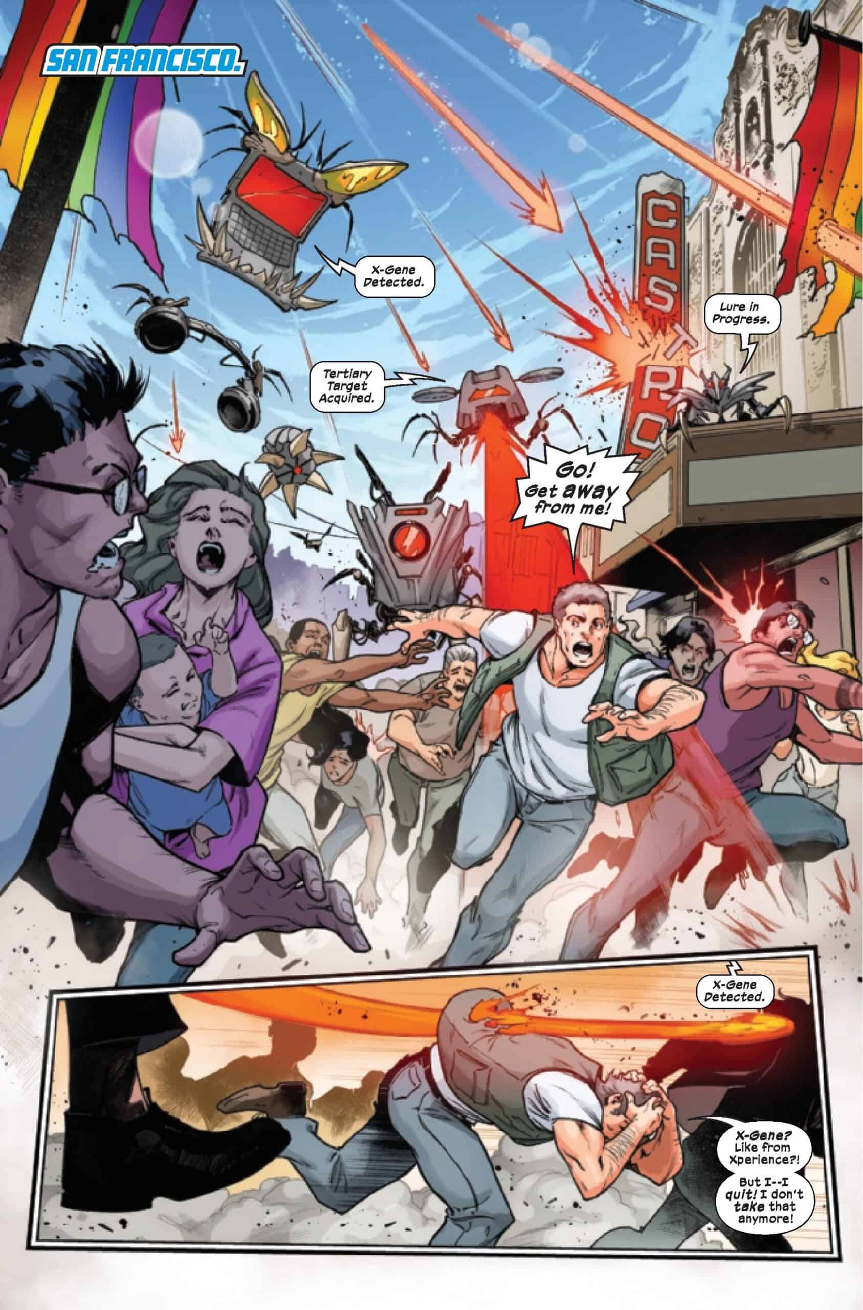 The secondary character of Astonishing Iceman #1 Romeo, deserves a spotlight in and of itself. Romeo uses his Inhuman abilities to bring Bobby back to life, purely based on their bond together, and continues to use those same powers to help Bobby in his pursuit of stopping Orchis and saving mutants around the world. Romeo claims this is because he knows Orchis will come for Inhumans once they are done with mutants, but it’s clear that he is here for Bobby first and foremost. This honest and powerful portrayal of love is a fantastic foundation for this book to build upon, with this strong first issue shining a bright light for the future of this series.
