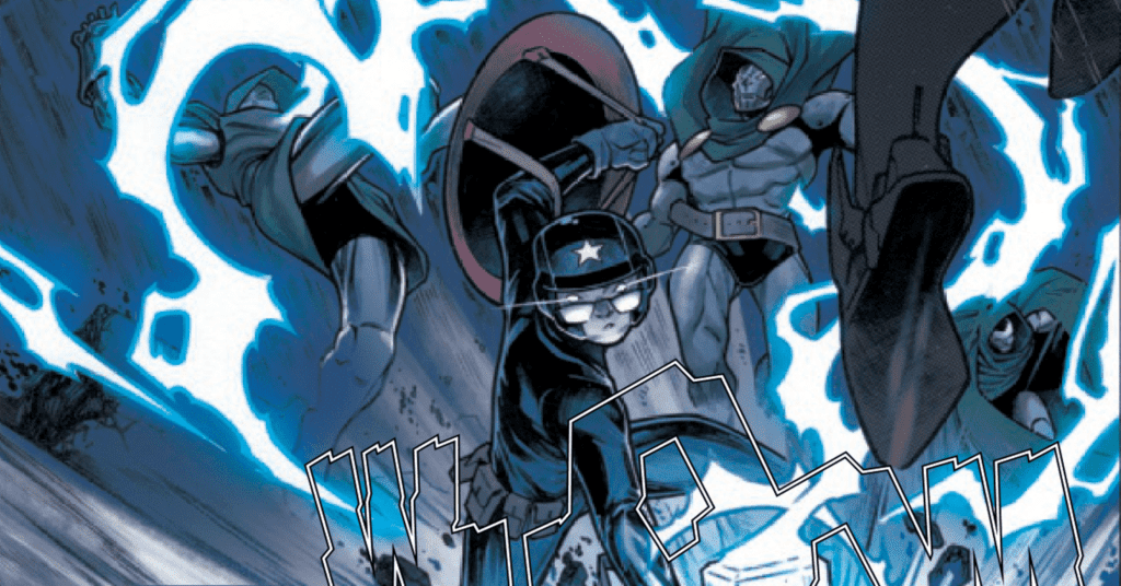 Avengers Forever #14 is strongest during its smaller, endearing moments. Last time, the granddaughter of King Thor brought a sense of melancholic realization to the comic through her ponderous inner monologuing about wartime trauma; in this issue, an adolescent, bespectacled Steve Rogers brings with him a sense of cautious wonder. Jason Aaron continues playing hot potato with the perspective, passing the narration duty to a different multiversal variant for each issue.