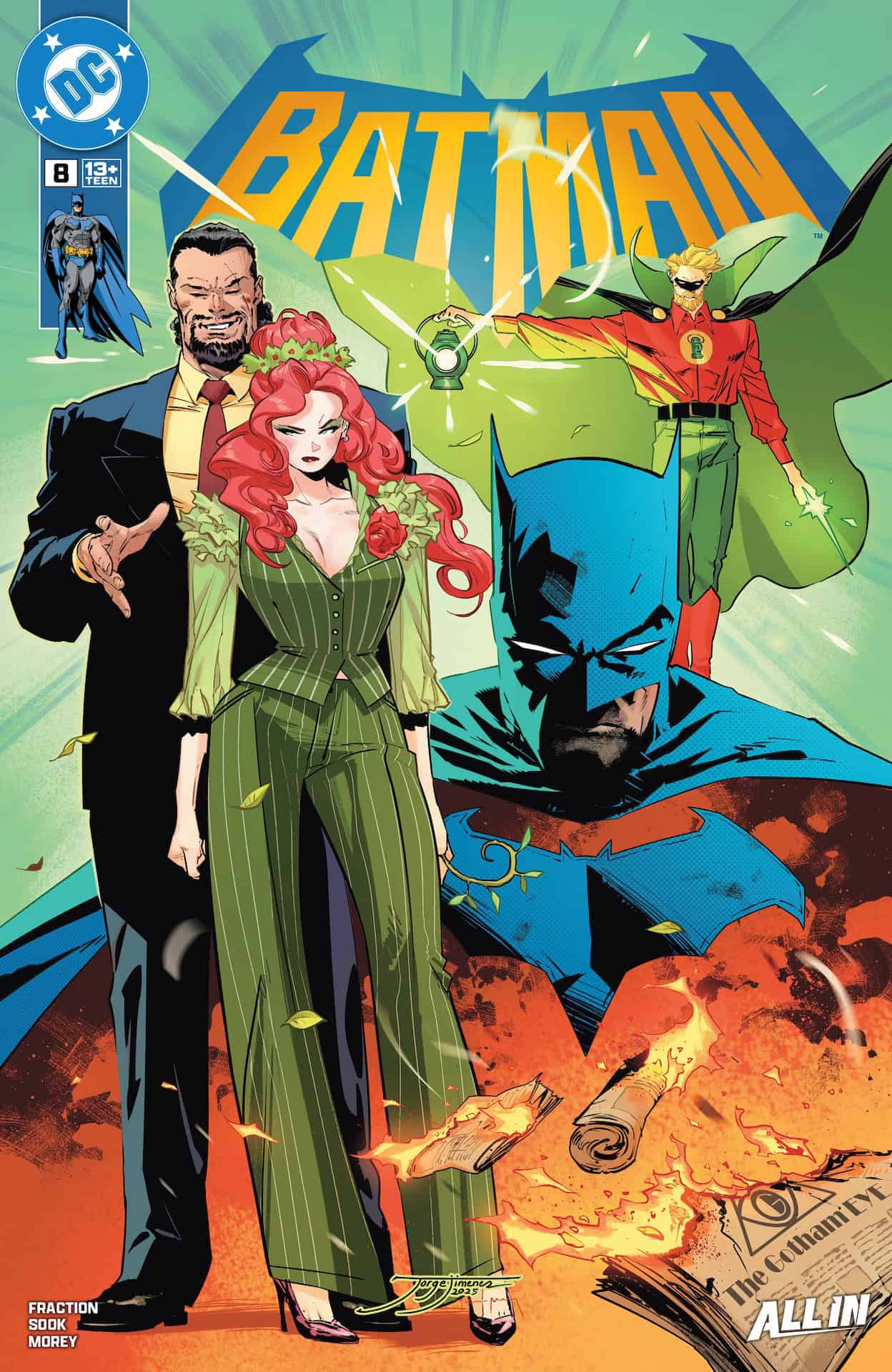 Vandal’s quid pro quo conversation with Mayor Ivy, formerly of the Poison variety, portrays them as figures separate from everyone else. This elitism, “we know better” attitude, is a major part of what’s wrong with Gotham City. Jack Dean and his young sidekick fearing the flash of police lights, despite having done nothing wrong, shows the effect of that elitism on the average person. And lastly, Alan Scott being harassed by and fighting back against a couple of random street thieves shows the good-natured light that beats at the heart of Gotham and its “Bat-Family.”