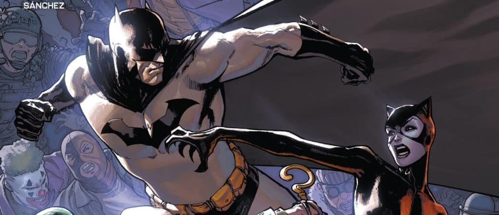 Even in the moments of calm, Marquez is able to build tension through excellent body language and facial expressions. When Riddler makes demands of Espinoza, he’s drawn to look suave and smarmy while holding, presumably her family, hostage. In the very next page, Marquez gives us several awesome shots of Espinoza’s hands loading her gun, preparing to kill Riddler and Catwoman for the Eye. There are several moments like this throughout the book, and Marquez’s thick linework and realistic proportions elevate this book to great highs throughout.