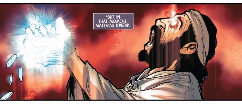 Necrodamus begins with his account of events which led him to possess the cursed silver, the reward for Judas’s infamous betrayal of Jesus and the catalyst for his subsequent guilt-ridden suicide. Matthias, according to the Acts of the Apostles, was chosen by the remaining apostles to replace the betrayer. His gospel reveals that the fateful 30 pieces of silver were cursed and tainted by pure evil, yet possessed the mortal strength to end the existence of the immortal. Once his lost gospel fell into the hands of the necromancer, it was only a matter of time before the silver followed.
