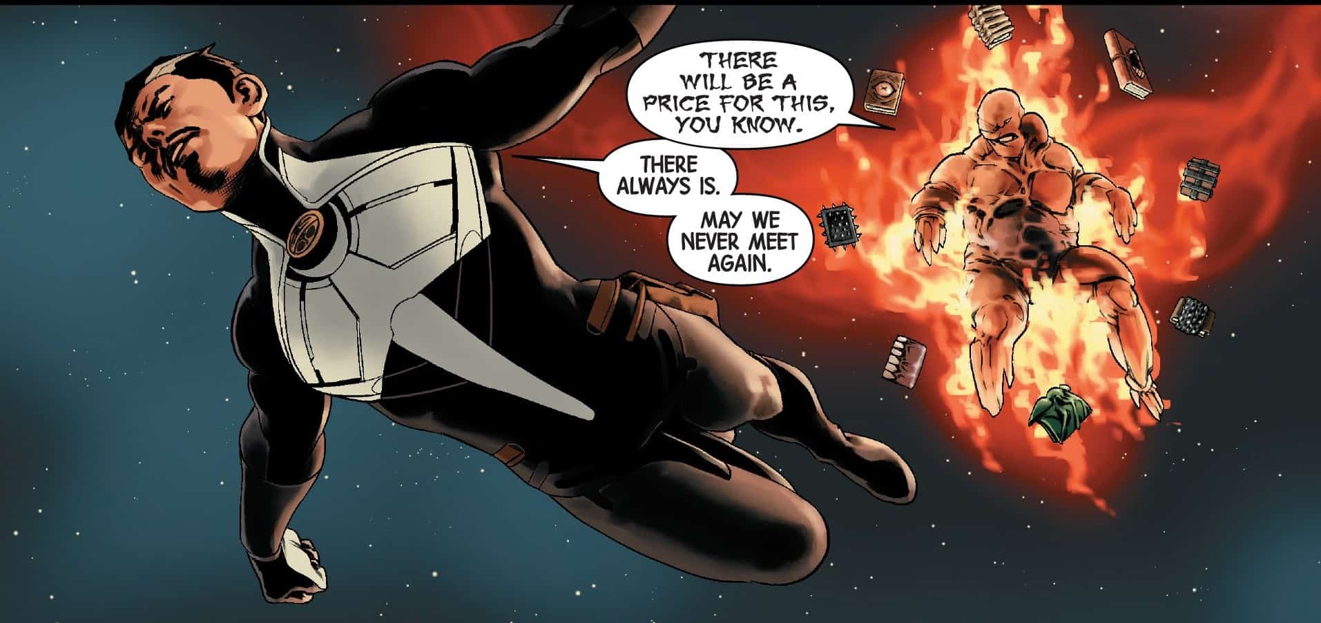 Wait a minute, didn’t Mark Waid JUST get finished dealing with the ramifications of making deals with demons? Not just in the last arc with Mephisto but the whole Magical Accountant scenario in issue #11, his huge backlog of magical debt and the need to find new methods of magic? And yet here we are again with (literally) maggoty demons making deals to save one boy? Harbingers of doom making smack talk with words like ‘extreme risk’ and ‘price’ whilst risking all of reality? I smell a plot device people!!!
