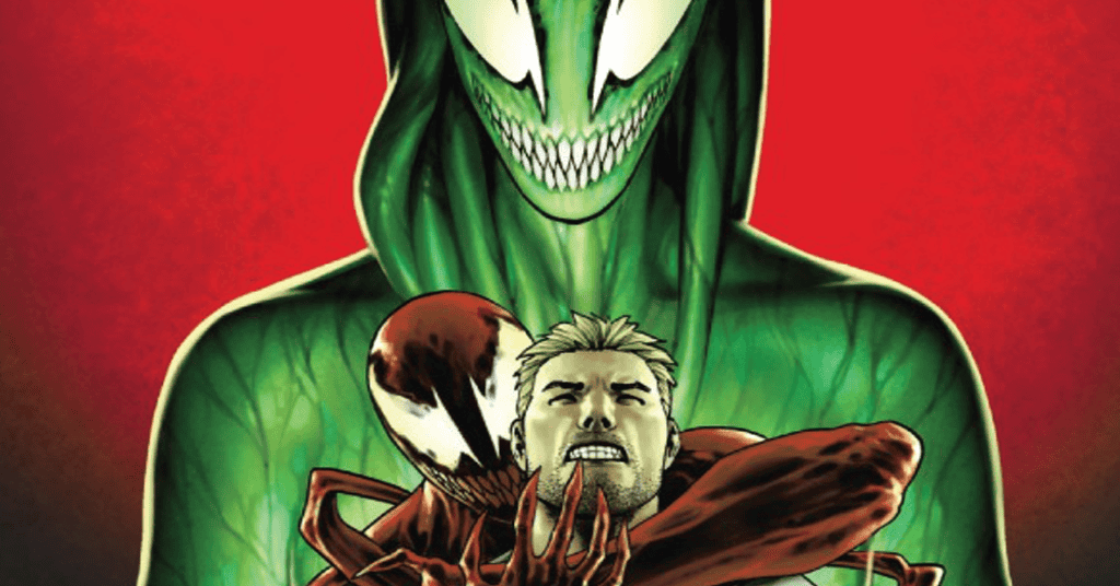 Eddie Brock: Carnage #9 invests its time in the development of this new character, hinging its emotional weight on a flashback to her tragic backstory. Miriam had a symbiote of her own, one of the rare few unrelated to Venom’s lineage and found escapism in being a carnivorous green monster at the cost of her humanity; a clear metaphor for addiction. While somber, its far from the saddest origin in Marvel, and the speed at which events progress doesn’t allow the mood to dwell. The story’s true purpose is to introduce the latest Maguffin, an organic serum that severs the bond between host and parasite, killing the latter.