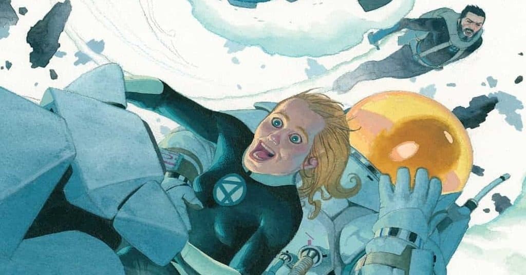 To begin, I misspoke at the end of our riotous review of the last issue. The latest smackdown between The Thing and The Hulk is scheduled for Fantastic Four #12. This is Fantastic Four #11 and, while part of it sets up that story, there’s something else going on here, pertaining to the Richards kids and especially Franklin.