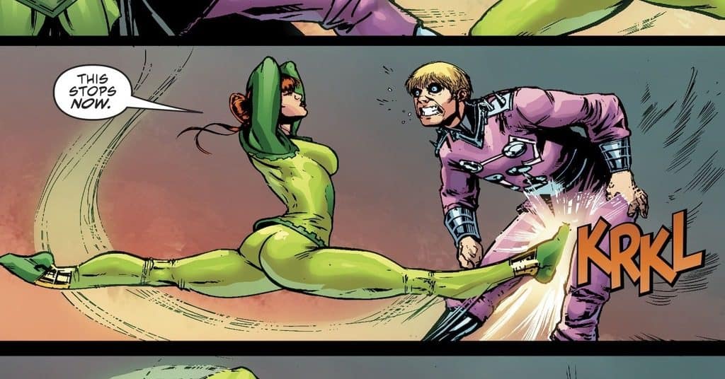 Writer Cecil Castellucci also sets up a terrifying dynamic wherein not even Aurelie’s fellow Furies believe her, or even angrily suggest she should shut up and just roll with it, because that’s the way things have always been. Or in Granny’s case, shut up because crying about being raped is a monkeywrench in her plans for ascending the Apokoliptian hierarchy. It’s cold stuff, made colder with the realization that Castellucci is merely holding up a mirror to events that go on every day in the real world. Recent real-world stories of military sexual assault make this issue suddenly feel even more in lockstep with the zeitgeist.