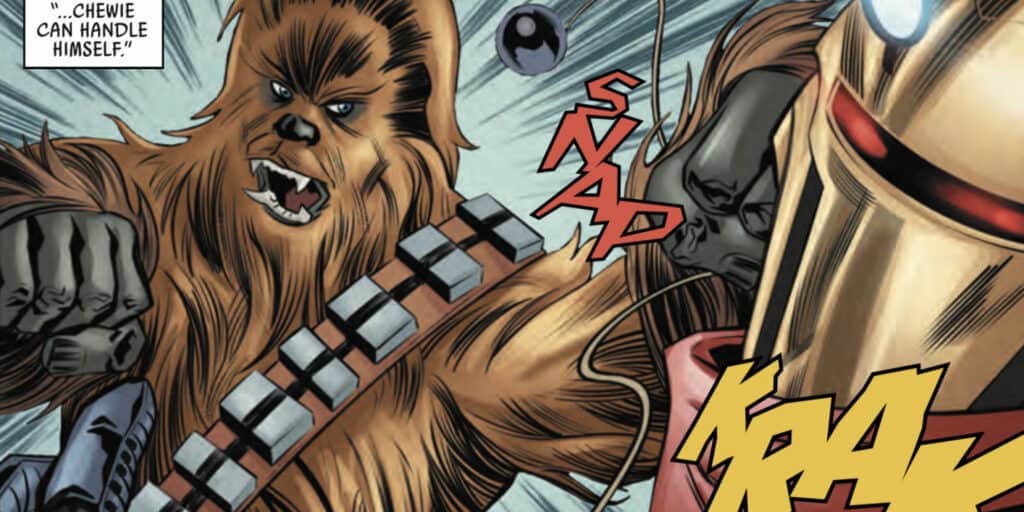 The art is very well done. Action is relayed very well and faces are quite expressive in conversations. The color schemes seem split between favoring a metallic blue of spaceship interiors in some sections and the low red natural light of Nar Shaddaa in others. This whole series is a great companion piece to the films, acting as a prequel to the original one, but its hard to say this issue adds all that much to the overall saga. It seems more like the whole series is mostly a side story with no real impact on who Han will become or how far he has come since Solo. It it just classic Han. The same can be said for Chewbacca. That’s not necessarily a bad thing. This issue is supported by lots of great material to provide an engaging short story that is fun with lots of twists and turns, but at the end of the day is just a coo Han and Chewie story. There is nothing more classic than that