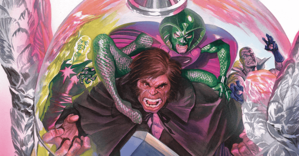 Alex Ross’ cover, depicting the fearsome foursome realistically reflected in Thor’s winged metal helm, is Immortal Thor #18’s crowning achievement. Beyond showcasing Ross’ technical skill, his clever composition places the battle inside Thor’s head, gesturing at the series’ emphasis on Thor winning battles through wit rather than brute force. And like Cinderella’s glass slipper, it’s a reminder of how enchanting this series has been and what it may be again.