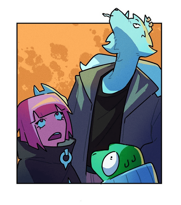 Setting up a world this rich in a comic formatted for the “Webtoon” scroll experience is not easy, and as much as I’d love to give John and Morgan all the credit for this, Swimnemo’s art is what really ties it all together. Each character is illustrated with a rich sense of expression that removes almost any need for overbearing exposition. Angel City, even within a format that restricts the artist’s paneling ability into small snapshots, is given such an interesting atmosphere. It sits on the edge of cyberpunk, but carves out its own dystopian path by filling its streets with colorful characters and tactile uses of contemporary architecture. Dojo’s color work highlights the differences in tone between the likes of a corporate high-rise and a working-class ramen shop, their use of lighting turning simple illustrations into atmospheric moments of both dread and excitement.