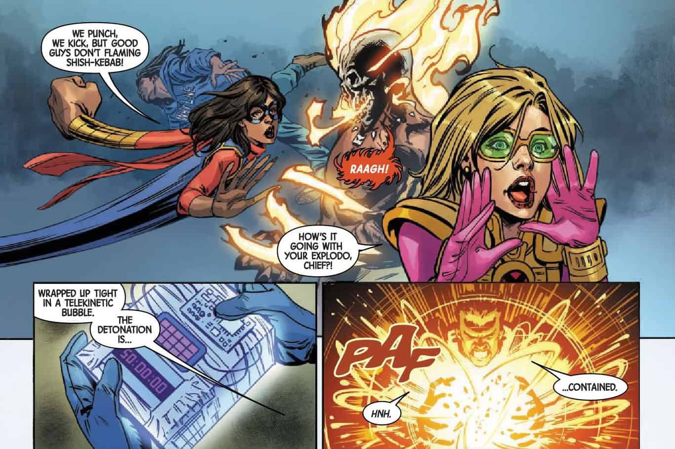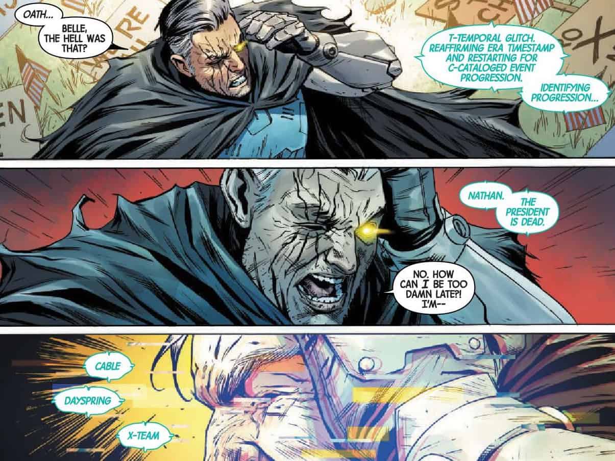 Seeley’s script dances very neatly between the appropriate amount of fan service and nods to past canon while also writing the characters in flawless voice. Boom Boom is a balance of obnoxious, chaotic and smart. Warren’s ongoing issues with the duality of his abilities are framed in a way that you immediately don’t question why he joins the team. Daken is the sullen one. There’s some big giveaways on the futures of characters like Kamala Khan. Kamala and the presence of the threat of the reformed more dangerous MLF under the mysterious leadership of Kali that actually makes the book feel part of the current status quo. In lesser capable hands this issue would probably feel a little dry but Seeley’s banter is perfectly on point and the ending is a exactly the kind of cliffhanger designed to keep readers interested as Seeley reveals Cable’s deadly and risky plan!