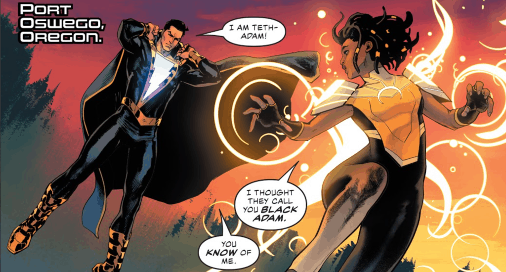 Clark, of course, is at the heart of the Justice League here, just as he sits at the heart of the entire DCU. What he says carries weight, and matters to the degree that anyone who disagrees with him must be a bad guy (a point humorously brought up by Green Arrow). To that end, his heartfelt – yet unpopular – ask to the rest of the team to allow Black Adam join is grudgingly accepted by all (even Batman), because of who he is. And if that sounds a bit like the ol’ logical fallacy appeal to authority – well, it could cynically be construed that way, but because Superman was so transparent in his secret identity reveal, he has some credit in the bank, so to speak, with everyone. Black Adam may not have the cleanest track record – but as Superman points out, he has always acted in superheroic defense of his nation, Kahndaq, oftentimes stopping a crisis in his part of the world long before Superman can arrive. He isn’t Brainiac, he isn’t Doomsday, he isn’t Sinestro, Clark tells us through his actions. He’s a man trying to do the right thing, and even though he has a different approach than we do, that doesn’t make him in the wrong. That doesn’t mean the entire League is immediately swayed – it’s obvious that it will take more than some convincing words for everyone to get onboard with this idea. And yet – if Superman is willing to vouch for Black Adam’s character, can the rest of the team truly be that far behind?