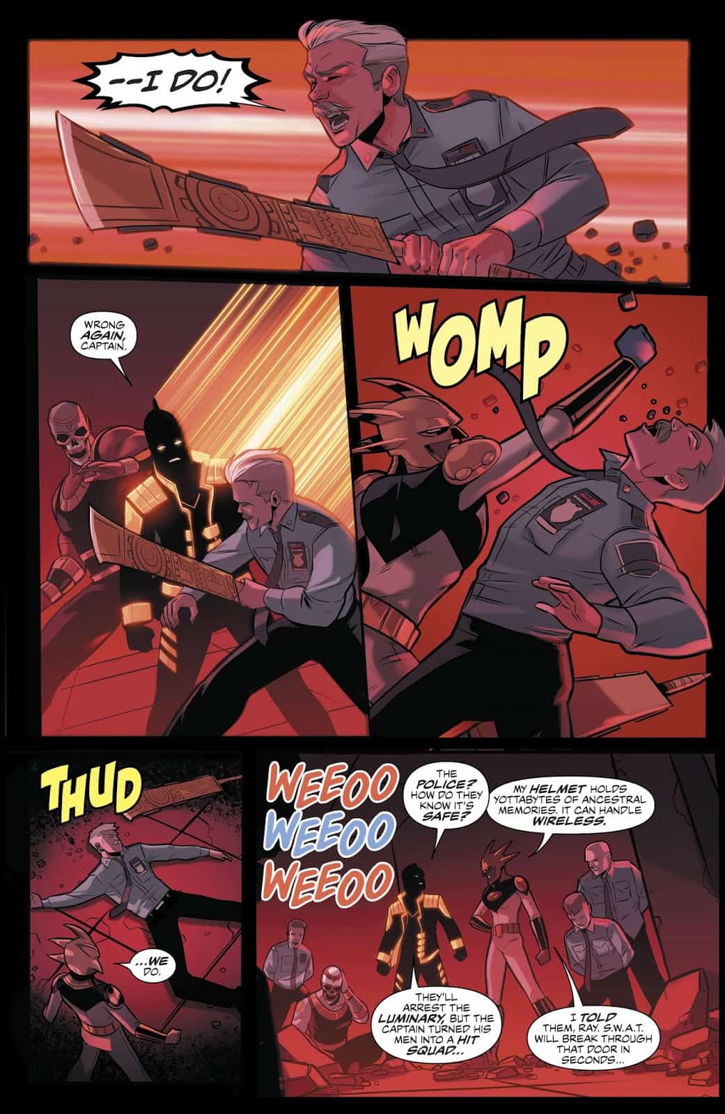She is angry that Ray left the city, and in his absence, the servants of the god Tezcatlipoca have been causing destruction in their wake. It is her mission to battle them. She says that The ray is the Light that is supposed to protect Vanity City from the darkness, and since he left this was his fault. Ray didn’t buy it either Folks, but they Team up to tackle a Hostage situation.
