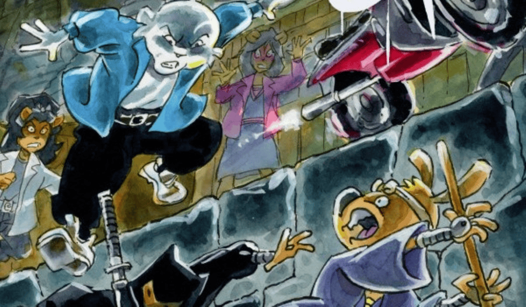 Jared Cullum’s art is stellar, with the biggest highlights being the car chase after the heist goes sideways, and Kaito’s flashback to what looks to be the final battle of his ancestor Usagi Yojimbo. The colors in that latter scene are especially gorgeous, showcasing the brutality and darkness of the situation, but also showing how Usagi still stands against like a hero.