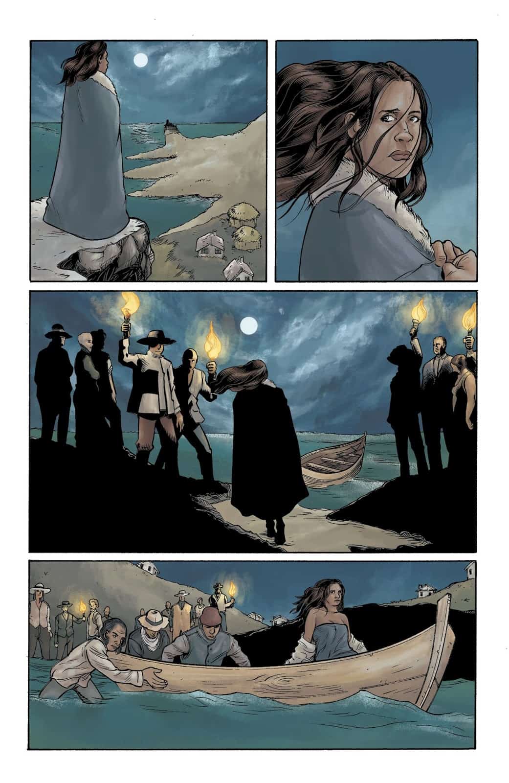 We open on a strange scene, a crowd is gathered around a boat on a beach, a young woman boards the boat and is pushed out to sea, as she floats gently out on the tide, she gently whispers. “For my sacrifice, the bounties will come.”