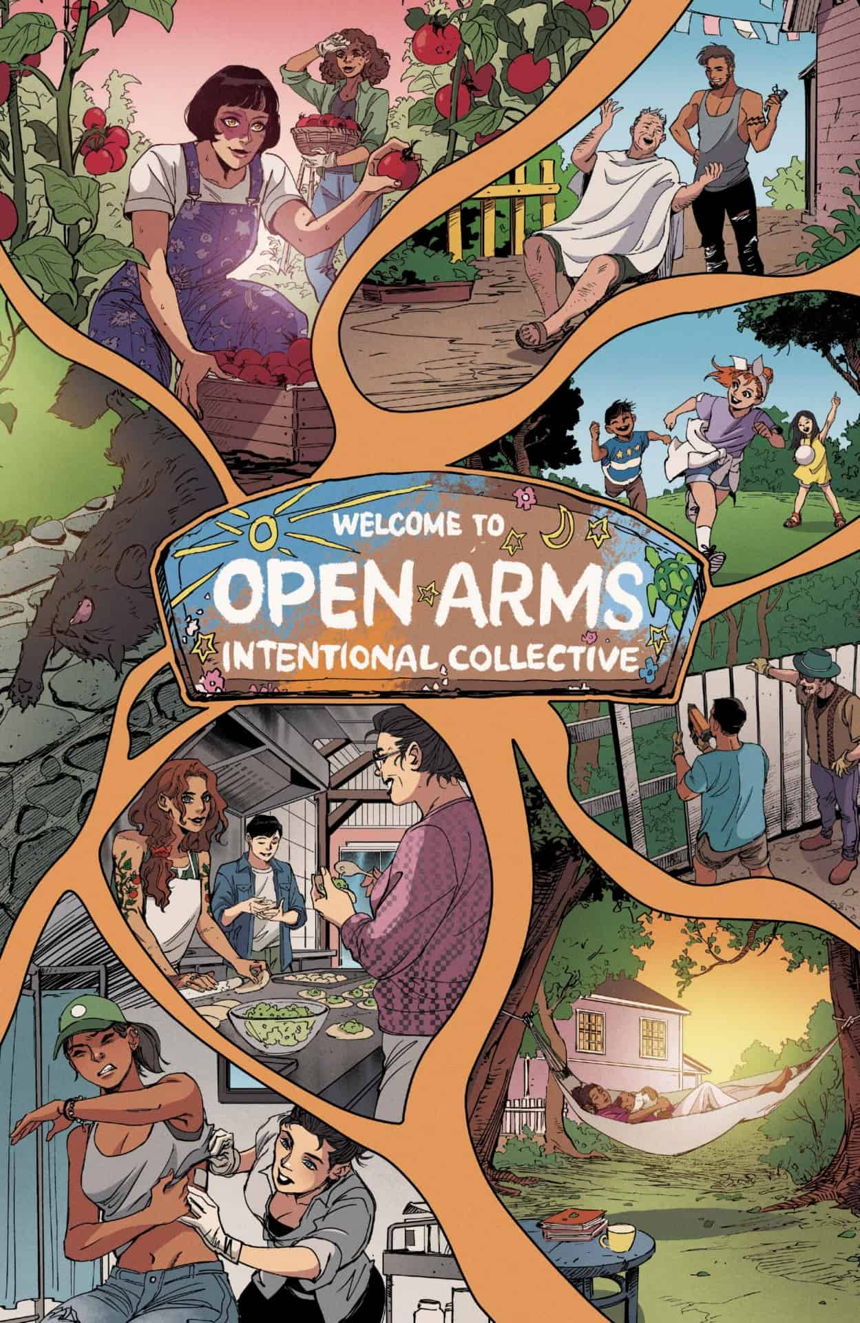Haining and Nalty’s work combines to deliver an overall pleasant environment, both in the subdivision and the collective. Haining provides just the right amount of detail, creating backgrounds that her moderately detailed characters feel at home in. Nalty’s vivid color palette is a good complement to Haining’s art style. Adjustments to imply shadow and light sources are somewhat broad, usually only a two tone contrast as opposed to more color tones for nuanced adjustments. The overall visuals are a good match for Neighborhood Watch #1’s narrative playfulness.