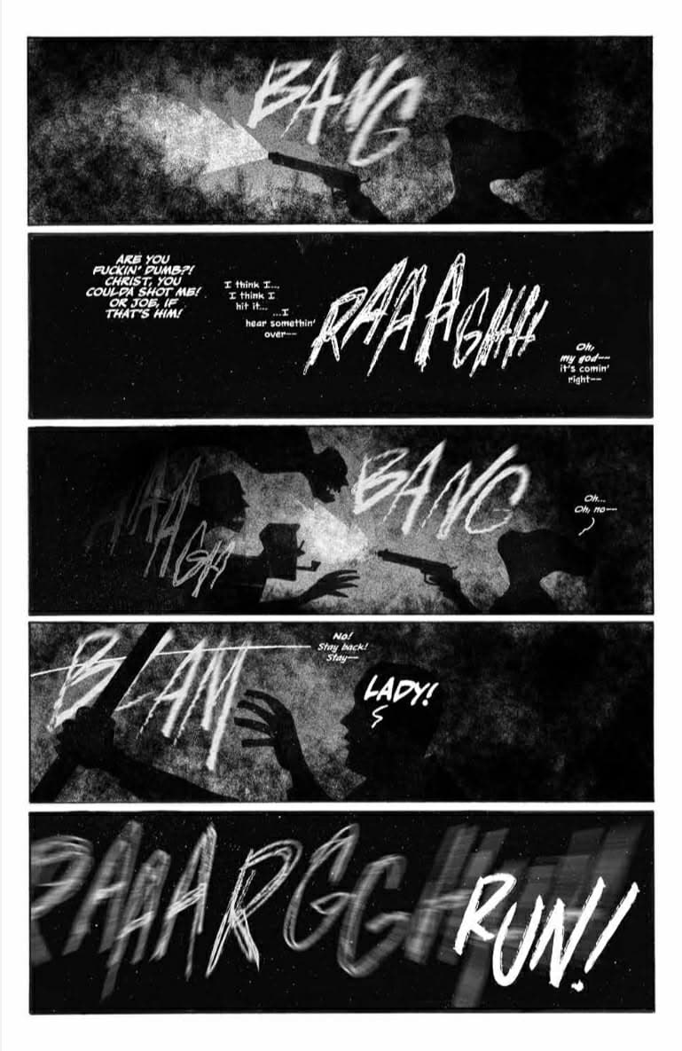 I came to News From The Fallout just prior to the release of its final chapter, “Darkness Everywhere,” and I’m glad that I did. I think this series really lends itself to that kind of breathless, all-in-one-go reading experience. Fallout is relentlessly paced, with Condon’s beautiful yet bluntly colloquial dialogue and Jeffrey Alan Love’s muscular, minimalistic art style driving the story like an assault on the reader – beginning with a terrifying siege, and culminating in a series of standoffs and skin-of-their-teeth getaways from our ever-dwindling cast of characters. Though Fallout is a relatively brisk read, I could easily see it becoming a perennial classic for me – one of those books I return to over and over again throughout the years, poring over Love’s hauntingly spare visuals.