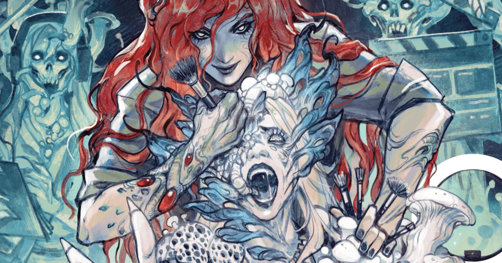 While COVID-19 may not exist in the DC universe, Poison Ivy nonetheless asks its readers to consider anti-vax rhetoric and our responsibility for one another through (an inexact but impossible to miss) metaphor. While Jessica Fong’s gorgeous and playful cover seems to promise Ivy terrorizing a beauty influencer and surrounded by a zombified film crew, this snapshot doesn’t relate to the issue’s contents. Instead, the brunt of the issue focuses on Ivy’s struggle to save the wellness retreat attendees, all of whom have become infected with the fungus – including Ivy’s love-smitten quasi-girlfriend Janet. Given the real-world COVID-19 pandemic, it’s inevitable that any story focusing on an outbreak has COVID undertones. Incorporating current events or pop culture has the potential to make a piece of media feel dated in the long run, but Poison Ivy feels all the more bold and vital for taking the risk.