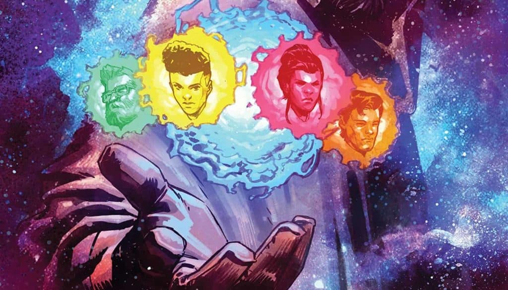 After stomping an elitist douchebag alien in their first real battle as a team the Psi-Lords are now on the run from said douchebag's literal legions of bloodthirsty homies. Much to their surprise the mystery man who helped them escape shows up alive and well despite the team watching him die in the first issue.