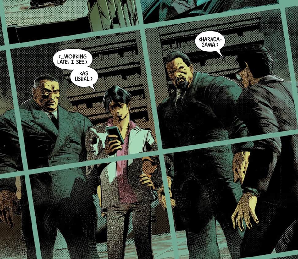 Meanwhile, at Yashida Corp., Shin is talking to someone on the phone about the Regenix leak, when he realizes the building is covered with red ninjas.