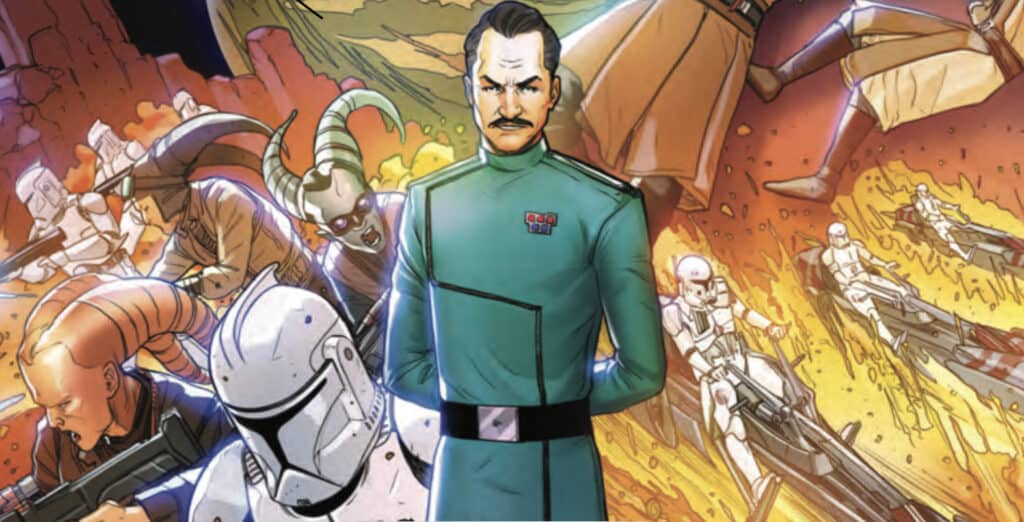 This story was perfect thing to add as a memory in this series. It does not step on the toes of the animated series, even though it plays out in that exact era. It merely references the show and even features Admiral Yularen, a character from not only Clone Wars but A New Hope as well. However the issue does not have the same pace or story structure of a typical episode. The story is told through Obi-Wan’s recollection, so instead of being a typical smash-em-up adventure, it focuses on how Kenobi felt at that time and how he feels about it during the storm. He is focused on Anakin, whom Obi-Wan feels responsible for. The over all story is about the rogue commander snapping under the pressures of war, But Kenobi if focused on how the pressures of war affected Anakin throughout, as he has now become an instrument of Republic war himself. Since this series began, the Kenobi show has played out, and although it takes place many years before this series, the events of that show leave a resonance on this issue. Kenobi felt a responsibility to Anakin at the time of this adventure, but Old Ben is remembering it through the filter of knowing what Anakin ultimately became in Darth Vader.