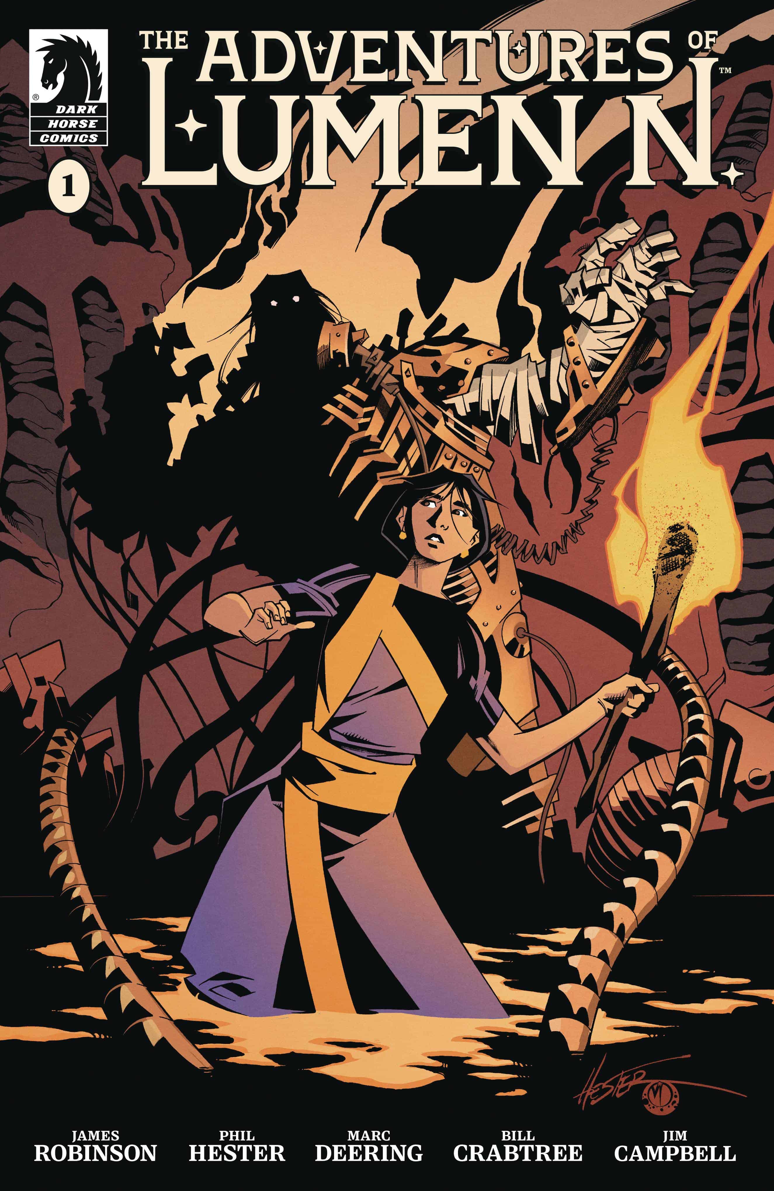Artist Phil Hester’s tendency toward straight lines and sharper angles serves the steampunk elements in The Adventures of Lumen N. #1 very well. The cross between exoskeletons and mechs that appear late in the issue take on a more threatening quality because they lack any kind of curves or general elegance.
