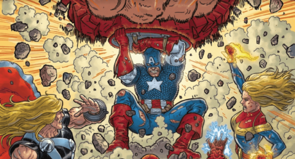 At the Nexus of All Realities, something has come to our world, two Juggernaut-wannabes, seemingly hellbent on destruction. That’s enough to get the Avengers in on the action (or at least the most commercially-known ones: Cap, Thor, Iron Man, and Captain Marvel), and while everyone else gets into the game of whuppin’ on some sorta-Juggernauts, Iron Man’s innate curiosity gets the better of him, which forces him out of his comfort zone. Abandoned by raw logic, Tony Stark must do the most un-Tony Stark thing possible to save the day: depend on something other than his scientific acumen… and ego. The result is an unexpected resolution that relies more on self-sacrifice rather than punching monsters in the head.