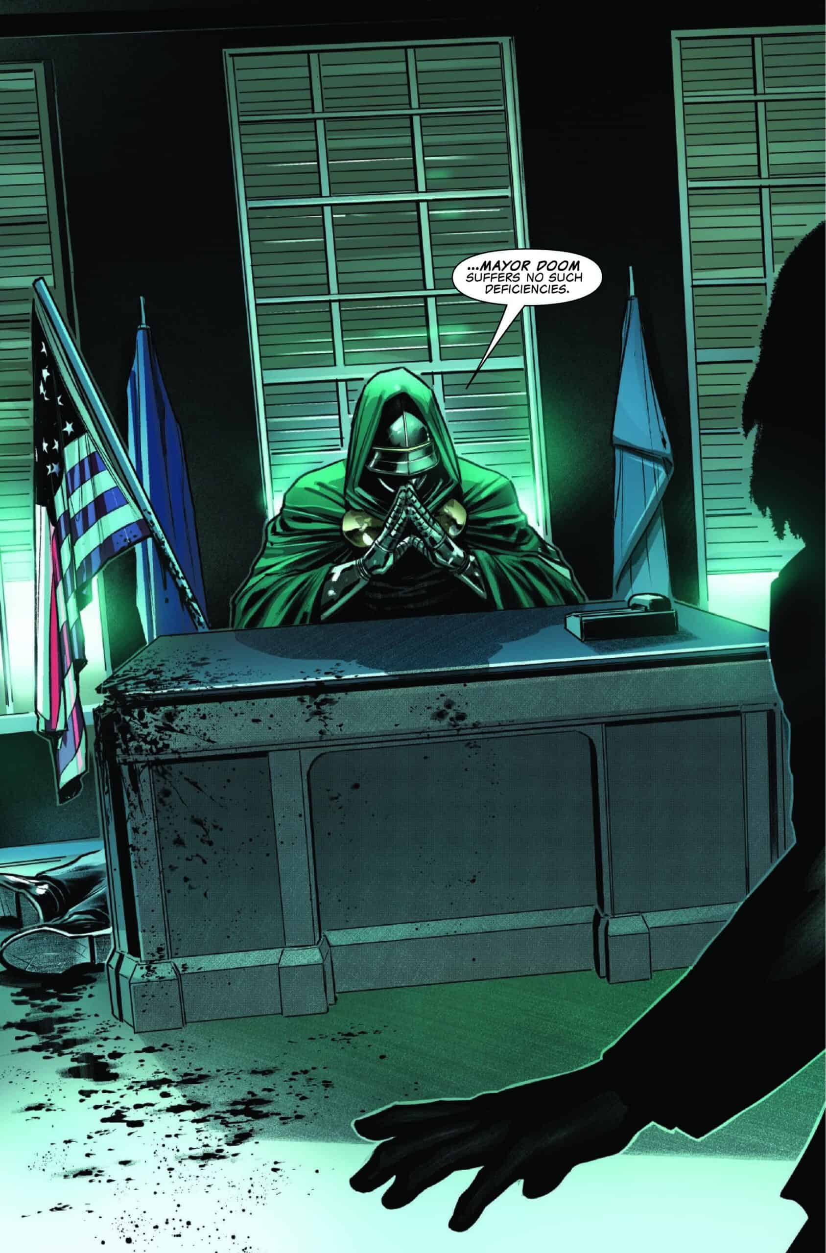 The Will of Doom #1 combines Fantastic Four and Red Hulk story threads into an unconventional One World Under Doom aftermath issue. The issue’s main plot is two-fold. First, there is an attempt by the remaining Doombots to fill the void created by Doom’s disappearance and create a collection of Doom-inspired fiefdoms across the planet. Second is Valeria’s inheritance and her attempt to disable the Doombots with her newly gained knowledge. Zdarsky leans into this story which stands in for a more intellectual and emotional examination of what the world would be like in the wake of a global dictator suddenly disappearing. It’s a too-easy way to brush aside the reality created by One World Under Doom.