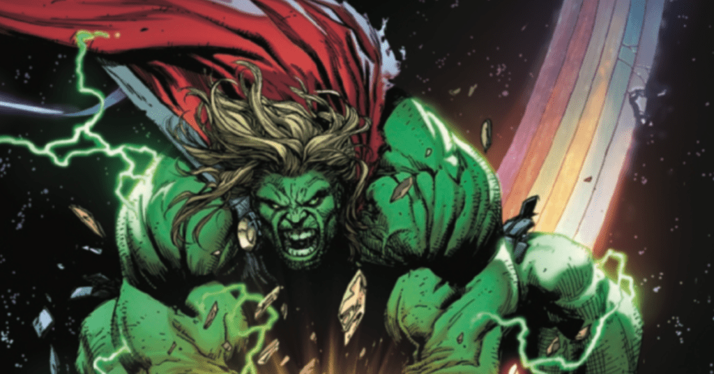 Thor #26 finds our titular hero “hulked out” after being possessed by Titan. Now, he’s fighting Hulk on the Bifrost and it’s Asgard that will pay the price.