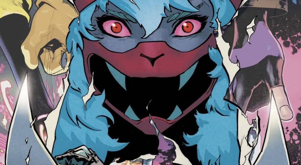 Gail Simone’s characterization of Nightcrawler is exceptional. He is both a charming gentleman and a priestly figure who cares for mutants, both the good ones and the often temporarily bad ones. This comes out in full force with the issue’s main event, as seen on the cover art. Mutina is back for blue…and gold apparently. After her first appearance as an anti-mutant movie star back in issue #17, she’s been a dagger dangling over the heads of Louisiana’s X-Men. To avoid spoilers, I won’t go into any specific details about why she’s come to Haven House on a special night, just that it ends up involving Nightcrawler in one of his best character moments in Simone’s run on Uncanny since it began back in 2024.