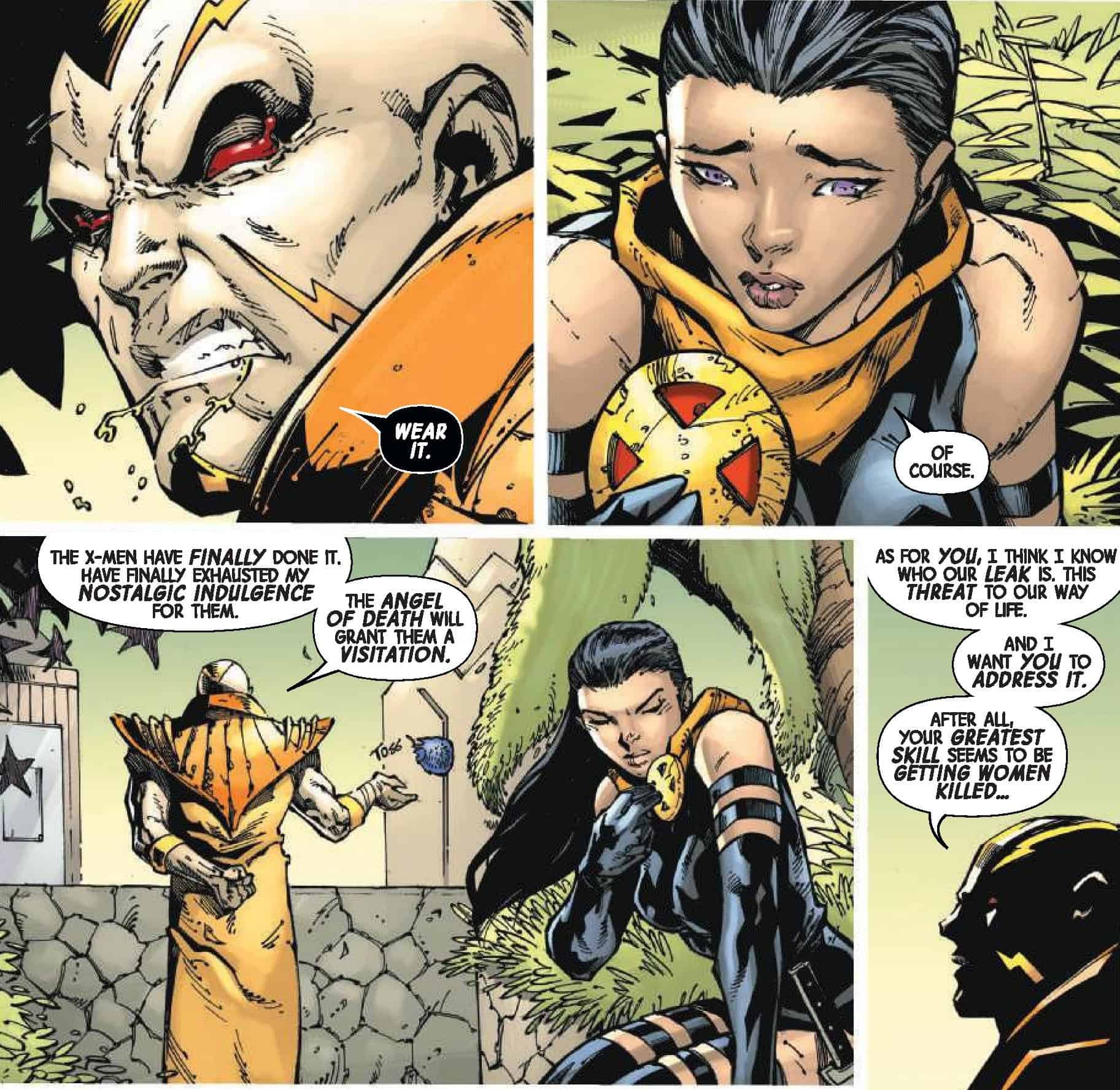 3. Overture: An approach or proposal made to someone with the aim of opening negotiations or establishing a relationship. The creative team open with their foot flat on the gas and just enough explanation to orientate oneself in the landscape before the proverbial hits the fan. Is it enough? I certainly think so. While it needs to be said that nothing in this opener is in any sense of the word wildly original. We have done this before but tropes are tropes for a reason, especially the ones that work. The creative team do enough in my opinion to establish the shot, then use a bunch of story hooks like why is Bei running from her husband, what terrible thing has Revelation got planned? Why did Kwannon leave the X-Men and other character positions to suck you ion and make you want to know why, including a Glob Herman that would probably scare the Punisher. Mackay doesn’t forget the work he’s doing in the current time line either and it’s used in this story to establish a straight line connection to the current adjectiveless title.