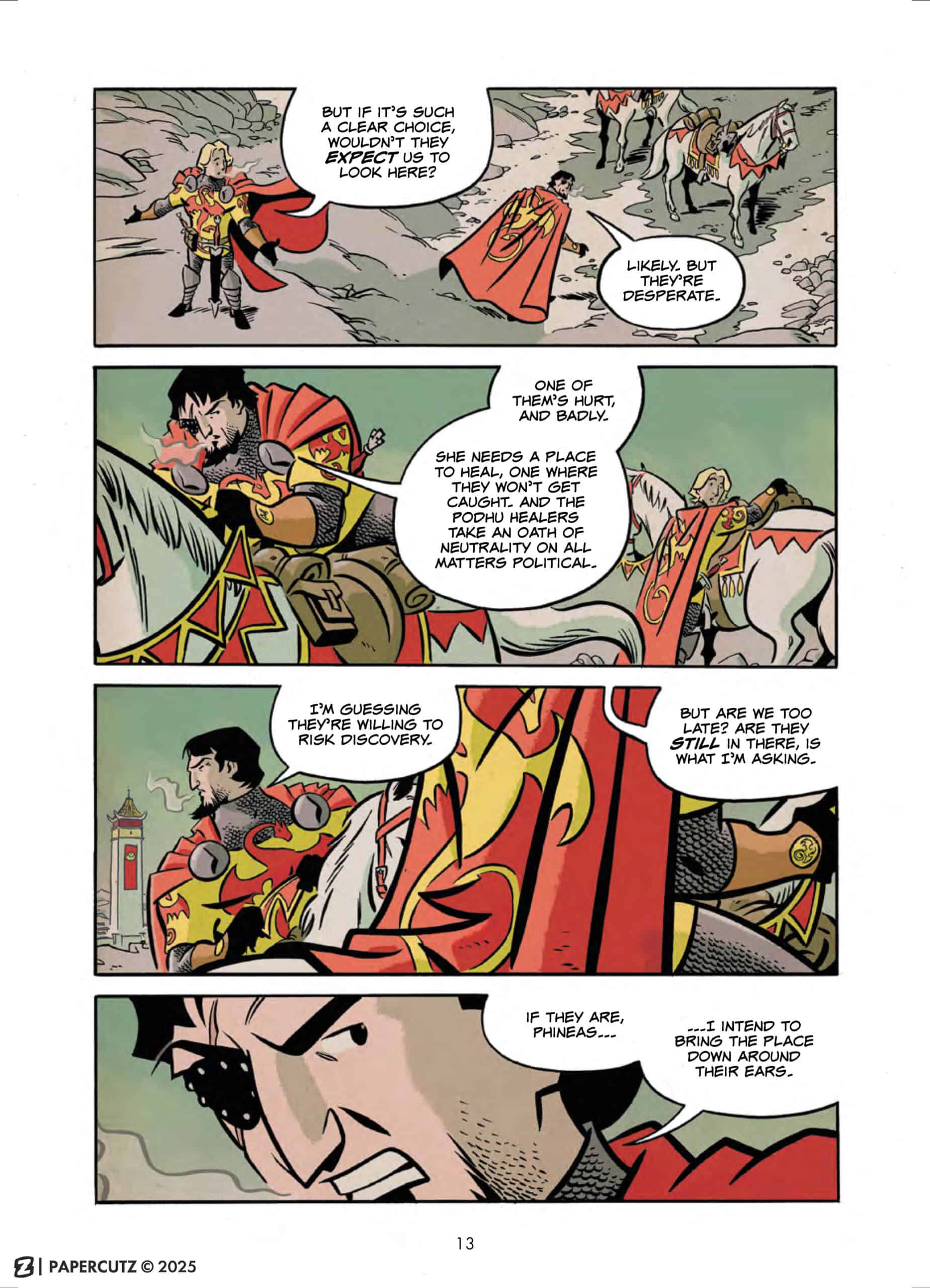 Running 120 pages, The King’s Dragon continues the series’s all-ages appeal for readers 7-12. Three Thieves Vol. 4: The King’s Dragon will be available in both paperback and hardcover, and is available now for preorder through your favorite book shop, or from Papercutz directly.