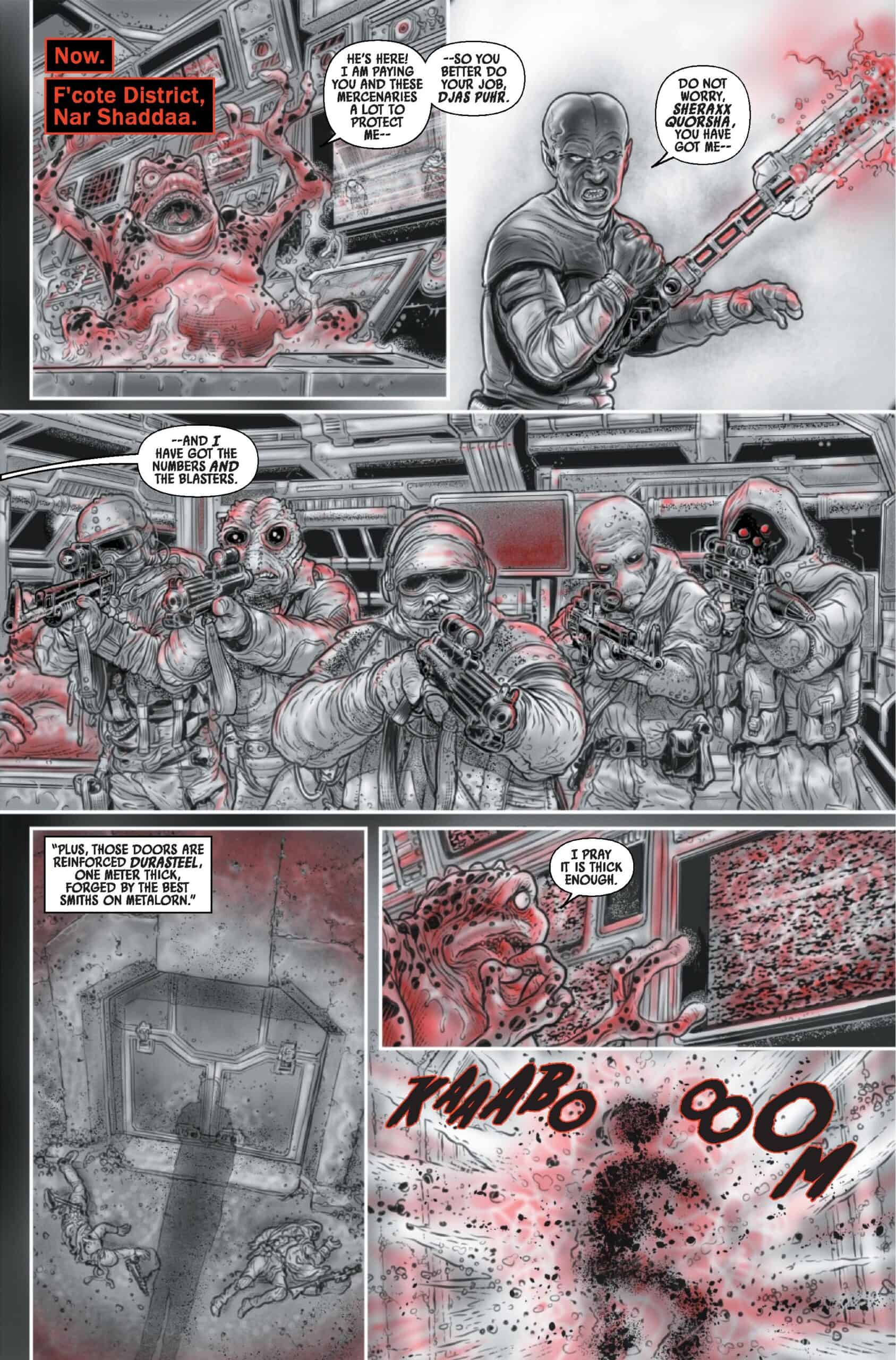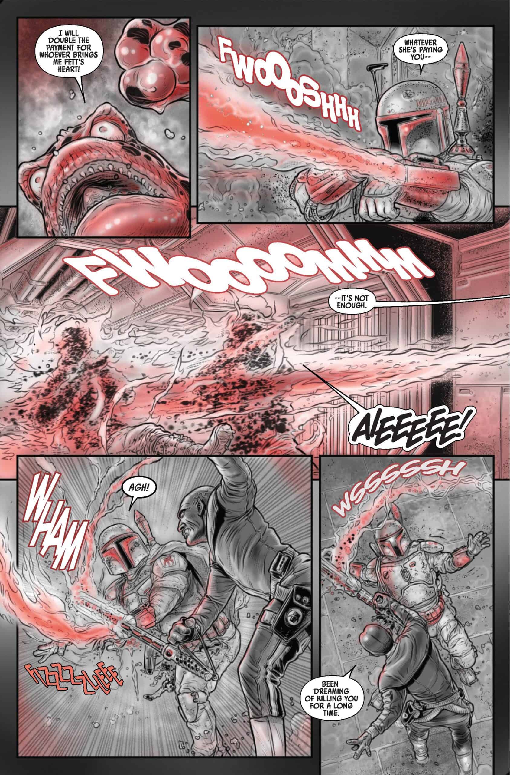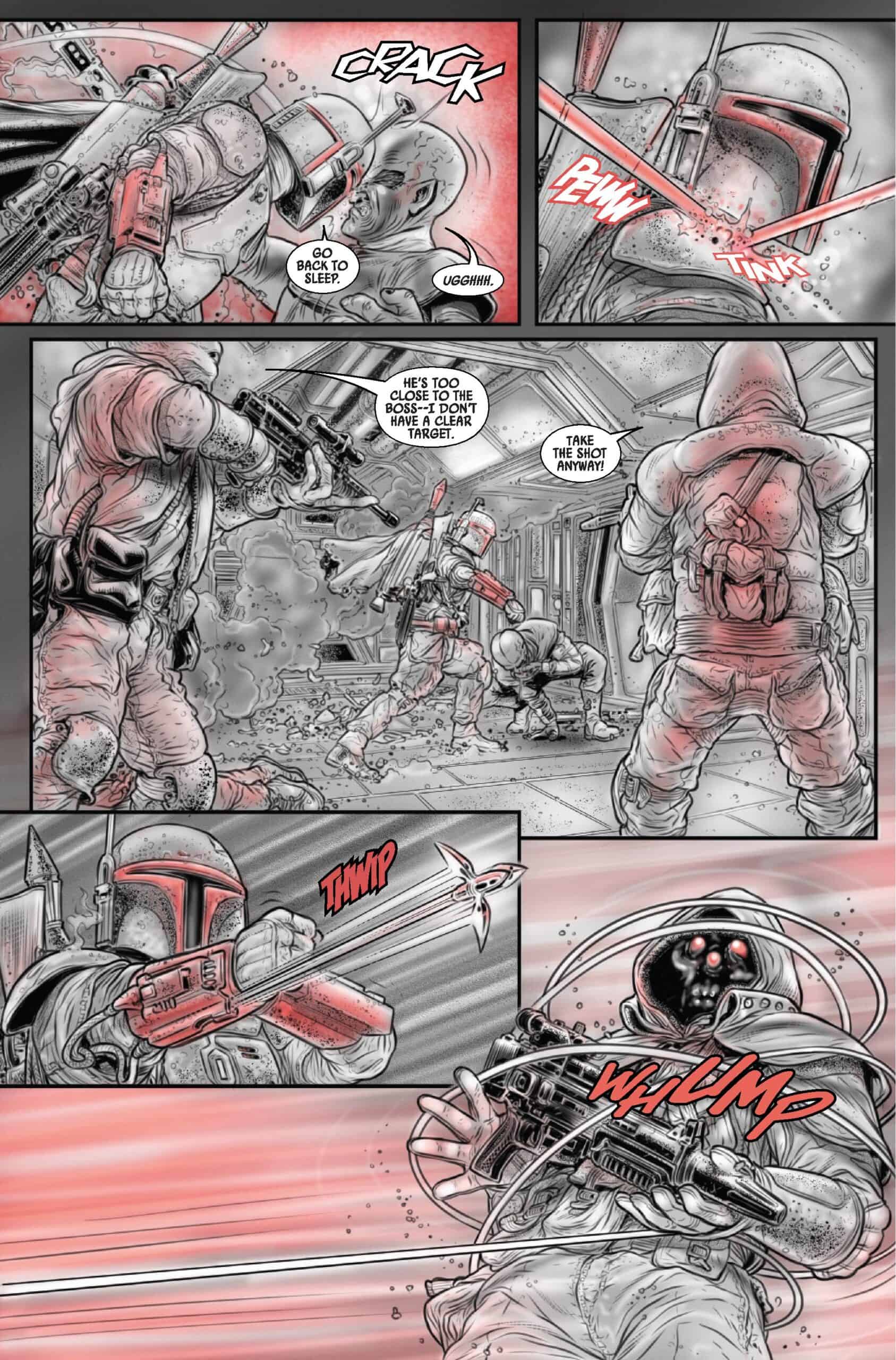 take a turn to tell a tale of the most dangerous bounty hunter in the Star Wars universe in Boba Fett: Black, White and Red #3