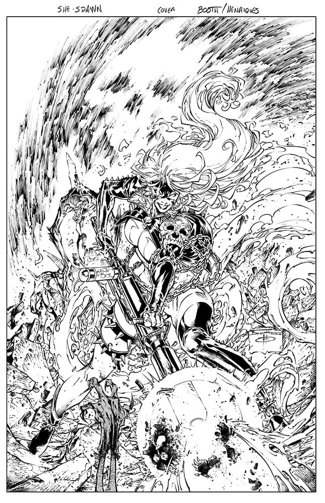 - She-Spawn #1 Cover E Virgin B&W variant by Booth