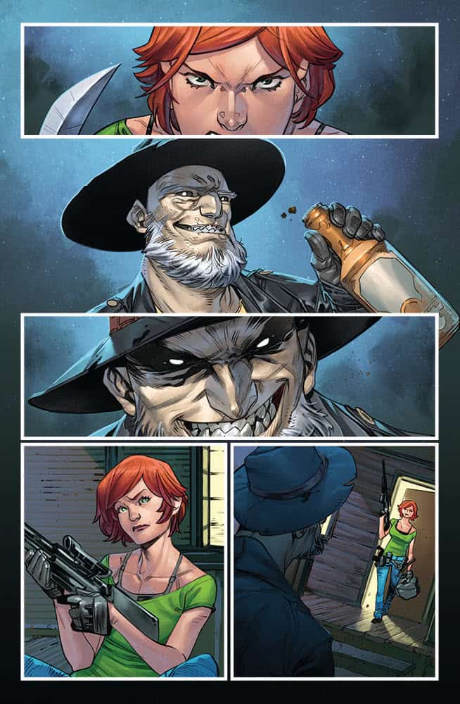“About She-Spawn herself, I love her. I see her as one of the few supernatural badasses who drives a pick-up truck and has a family cabin in the woods. She goes up against a religious sect to save a child, making her a bad person fighting for something good, with stakes she couldn’t possibly imagine. Ig Guara did meticulous, gorgeous work, with typically beautiful classic Image coloring by Robert Nugent. It just looks stunning. It’s a story with no-seat belt and the engines on high––violent, a little kind, a little mean, about an exploration of the country and a character’s soul.”