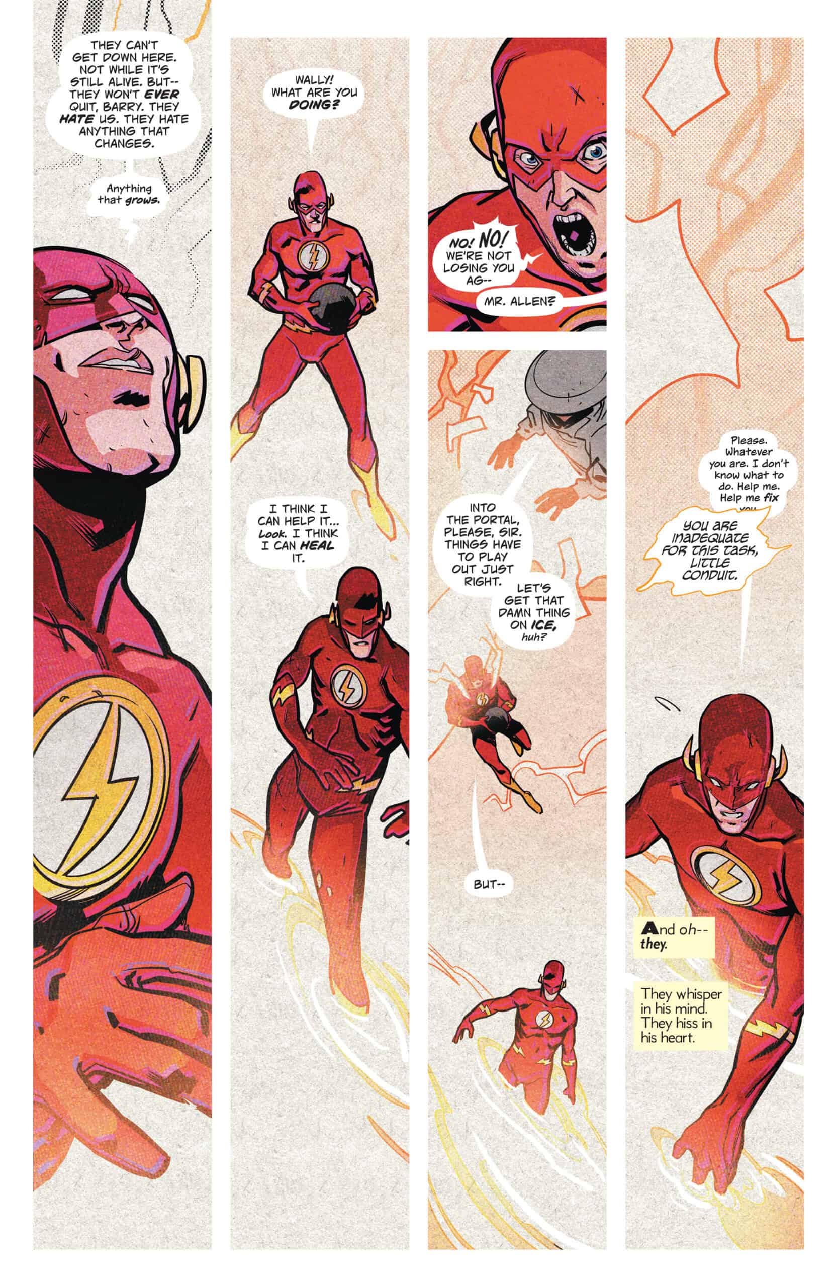 Wally West has never been quicker, more fulfilled, more heroic. His loving family is around him. And yet something is off. Very off. His evolving understanding of his powers has opened Wally to new avenues of sci-fi adventure and attuned his senses to strange new ideas. Something whispers from the dark vibrations beyond the Speed Force, and as Wally experiments with creative new approaches to his powers he encounters new realms, mysterious allies and mind-shattering terrors.