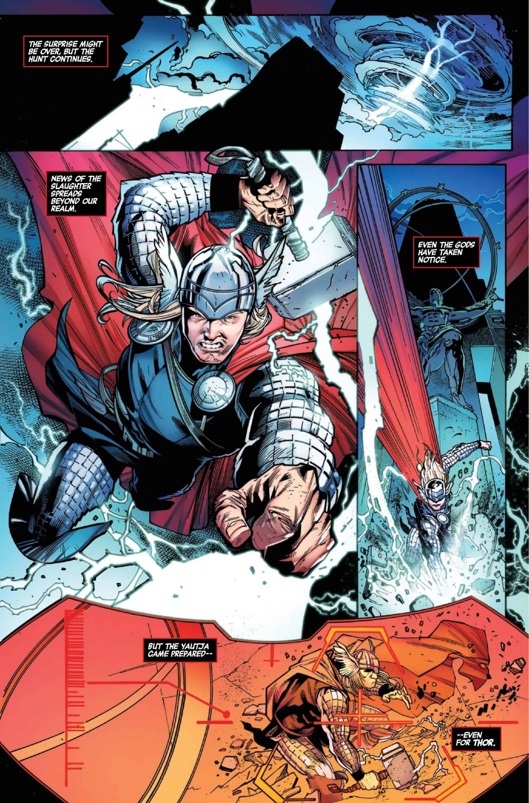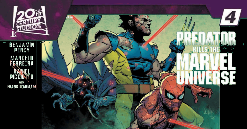 The bloody epic battle between the Predators and Marvel’s heroes continues in Predator Kills the Marvel Universe #4, the penultimate installment of the series l.