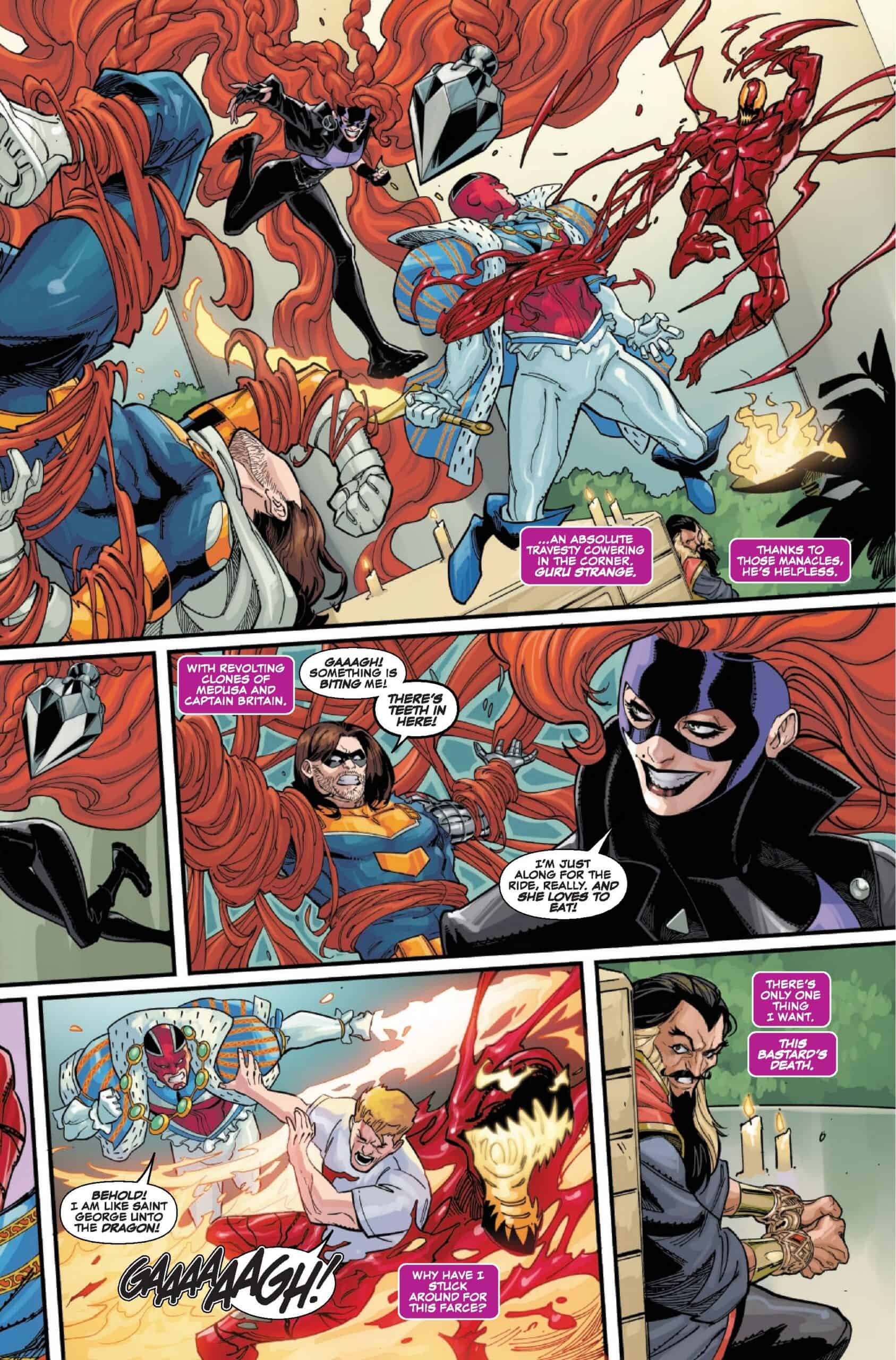 As the rest of the team takes on Guru Strange and twisted doubles of Medusa and Captain Britain, Bucky starts to fear that the New Avengers have their own clone problem…
