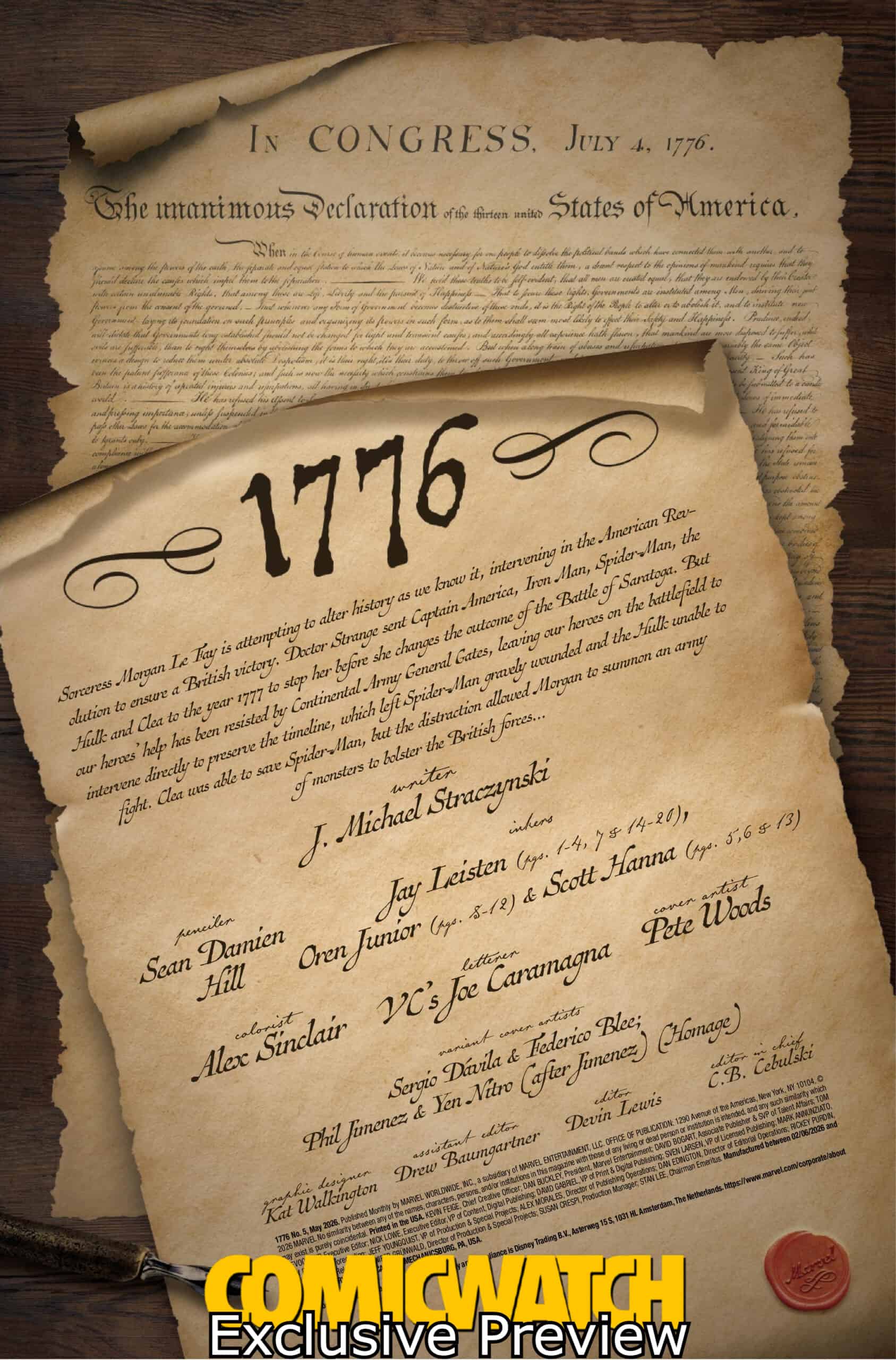 In advance of America’s250th anniversary, Marvel Comics pays tribute to the country’s founding this November in 1776, a five-issue limited series written by legendary writer J. Michael Straczynski and drawn by superstar artist Ron Lim and acclaimed artist Sean Damien Hill.