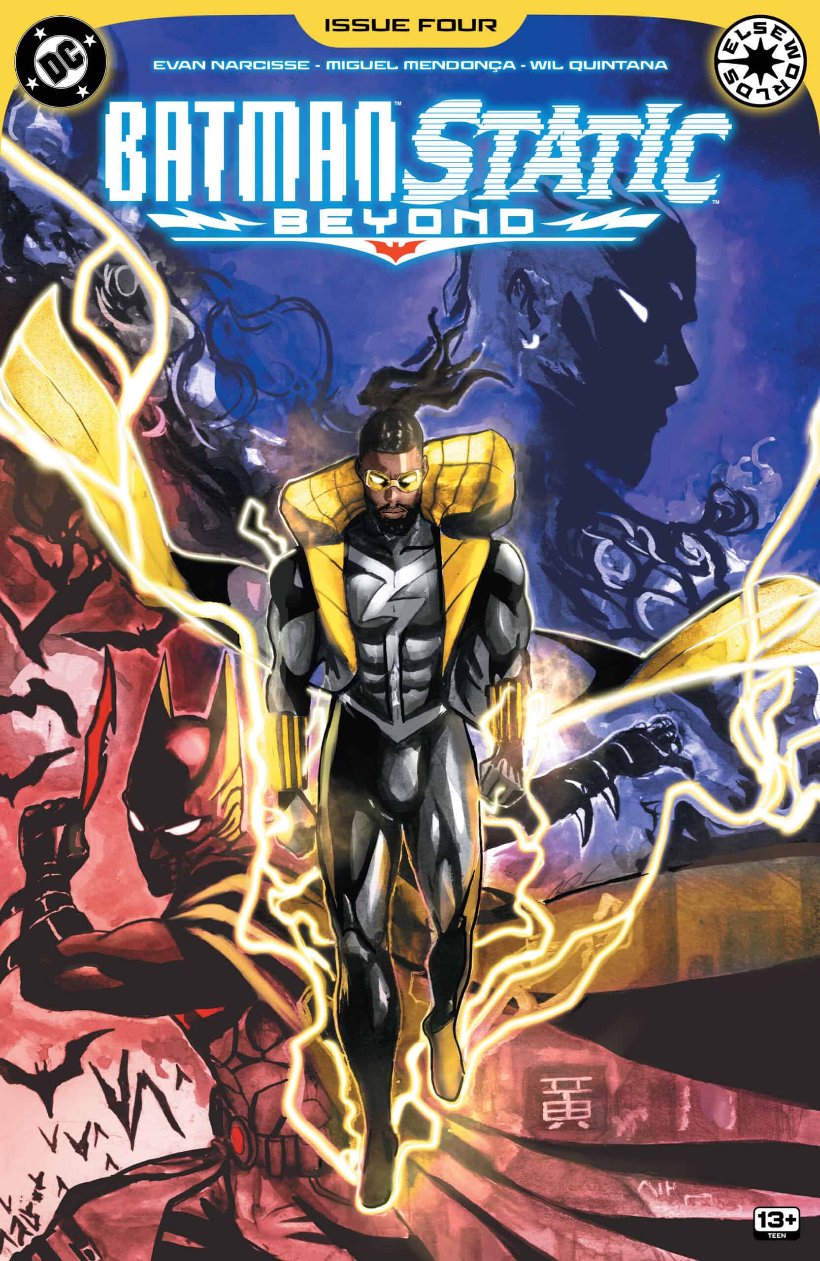 With the world plunged into darkness, Batman and Static suit up to bring back the light in Batman / Static: Beyond #4 on shelves and digital platforms March 4, 2026, from DC Comics