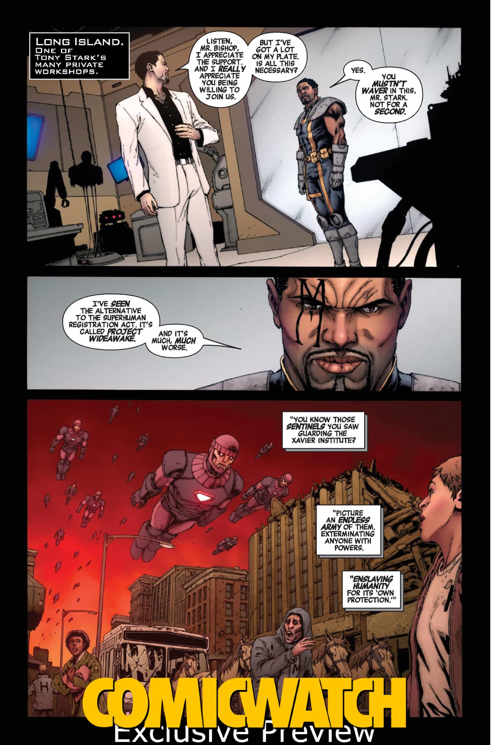 An urgent mission from Bishop takes Tony Stark into the Days of Future Past, where the revelation of the apocalyptic future changes everything Tony thought he knew about the consequences of the Superhuman Registration Act.