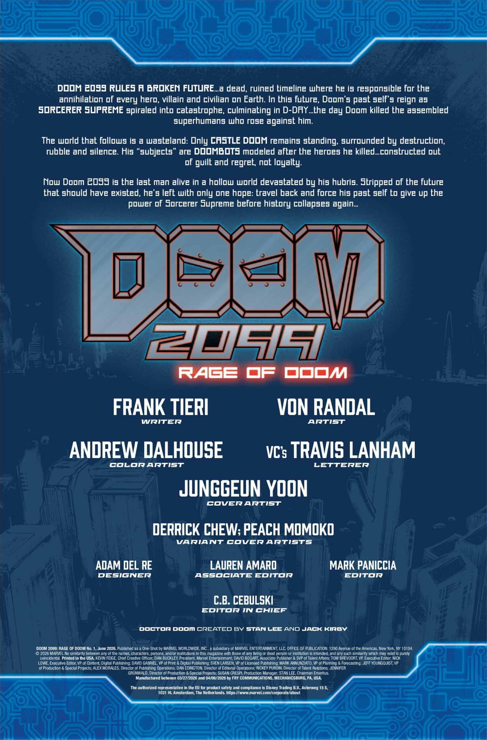 The path to redemption may demand a price even Doom never anticipated in DOOM 2099: RAGE OF DOOM #1, on shelves and digital platforms April 29, 2026 from