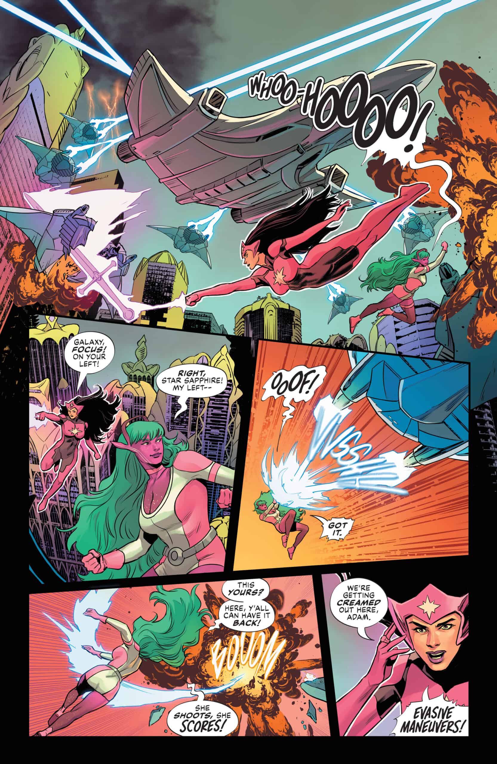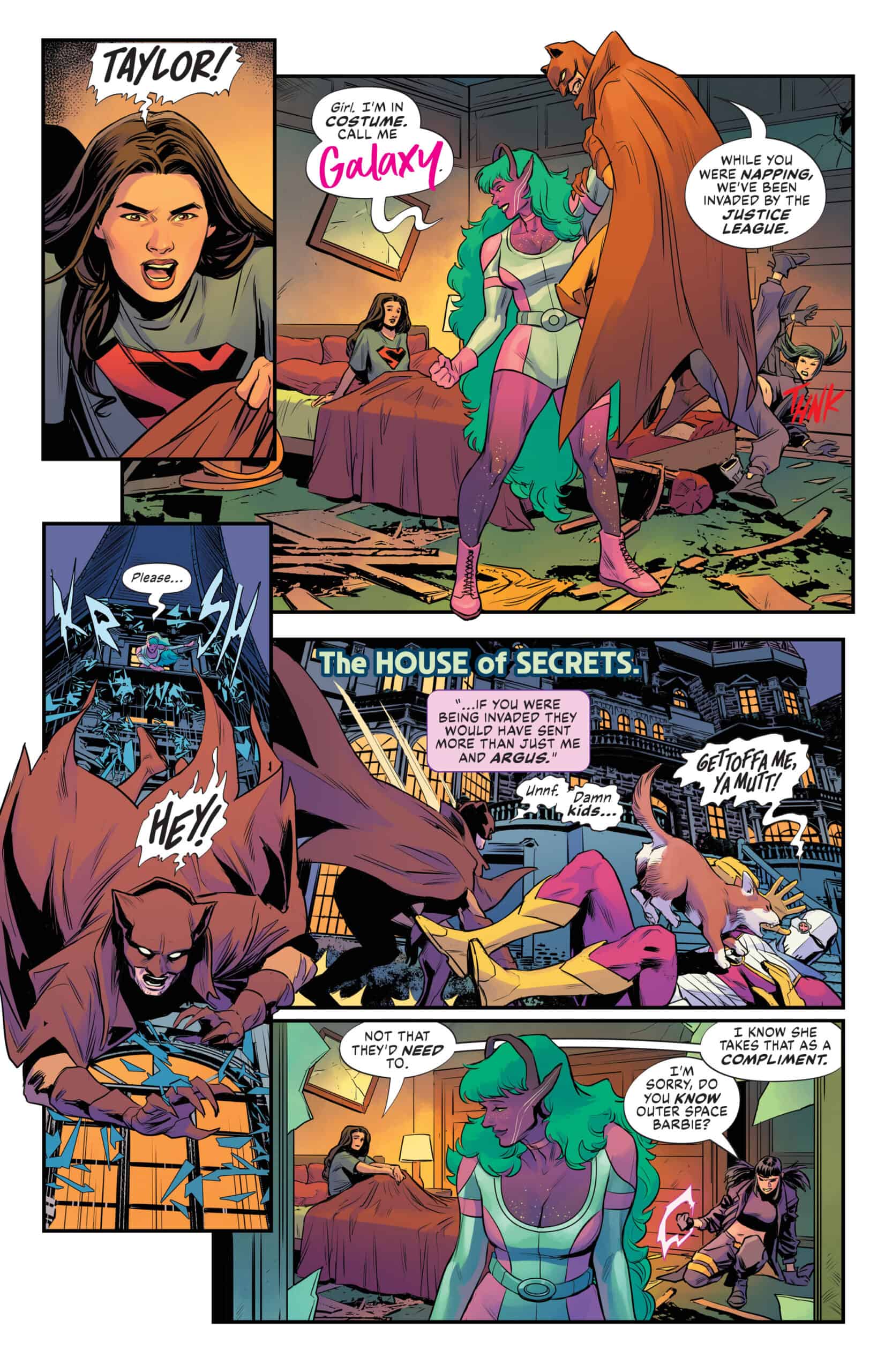Except, well, Green Arrow sure does hate space. And Adam Strange’s ship comes under attack before it even enters Naltorian orbit. And Galaxy invited her best friend and one of the League’s most wanted, Dreamer, along on the mission without telling anybody.