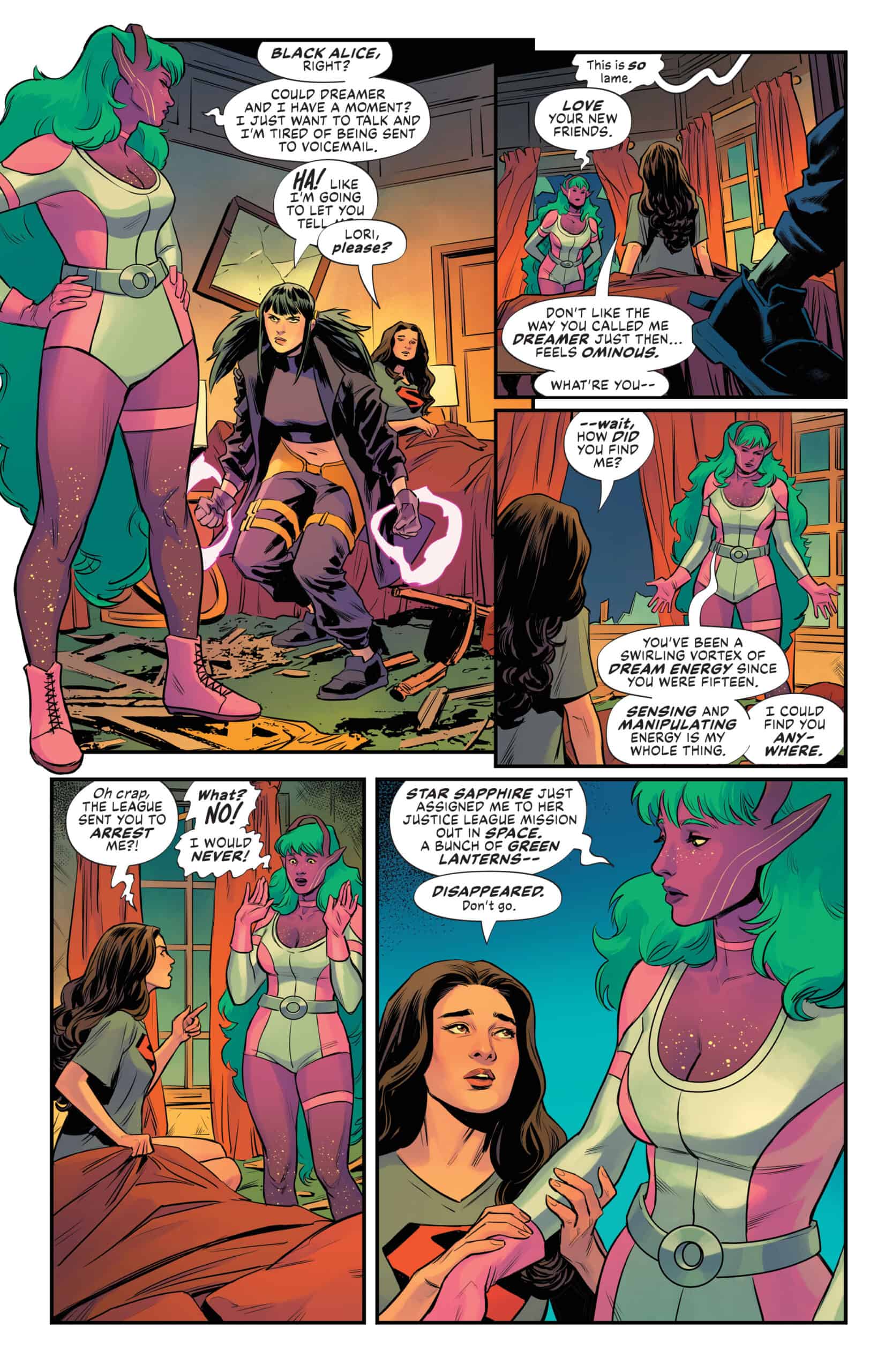 Dreamer’s visions seem to spell doom from the very start. Just when Star Sapphire thought she was getting the hang of her powers and the whole team-leader thing… Will this team of disparate dynamos figure out how to come together to win the day? Or will they, too, succumb to the Witch Queen’s all consuming hive mind?