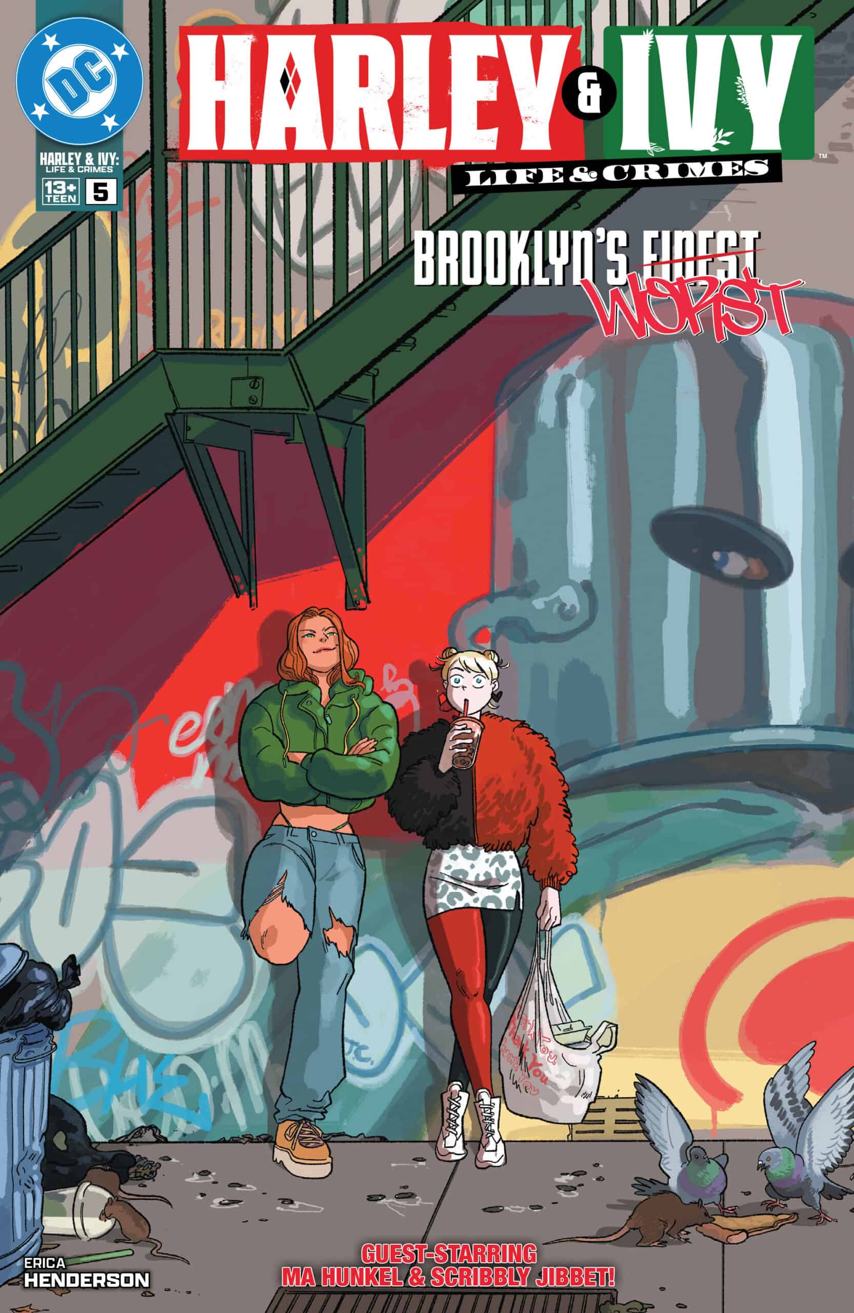 Eisner Award-winning artist and writer Erica Henderson weaves the canonical story of how Ivy and Harley went from enemies to friends to lovers continues as Harley and Ivy are on the run with almost nothing but the shirts on their backs