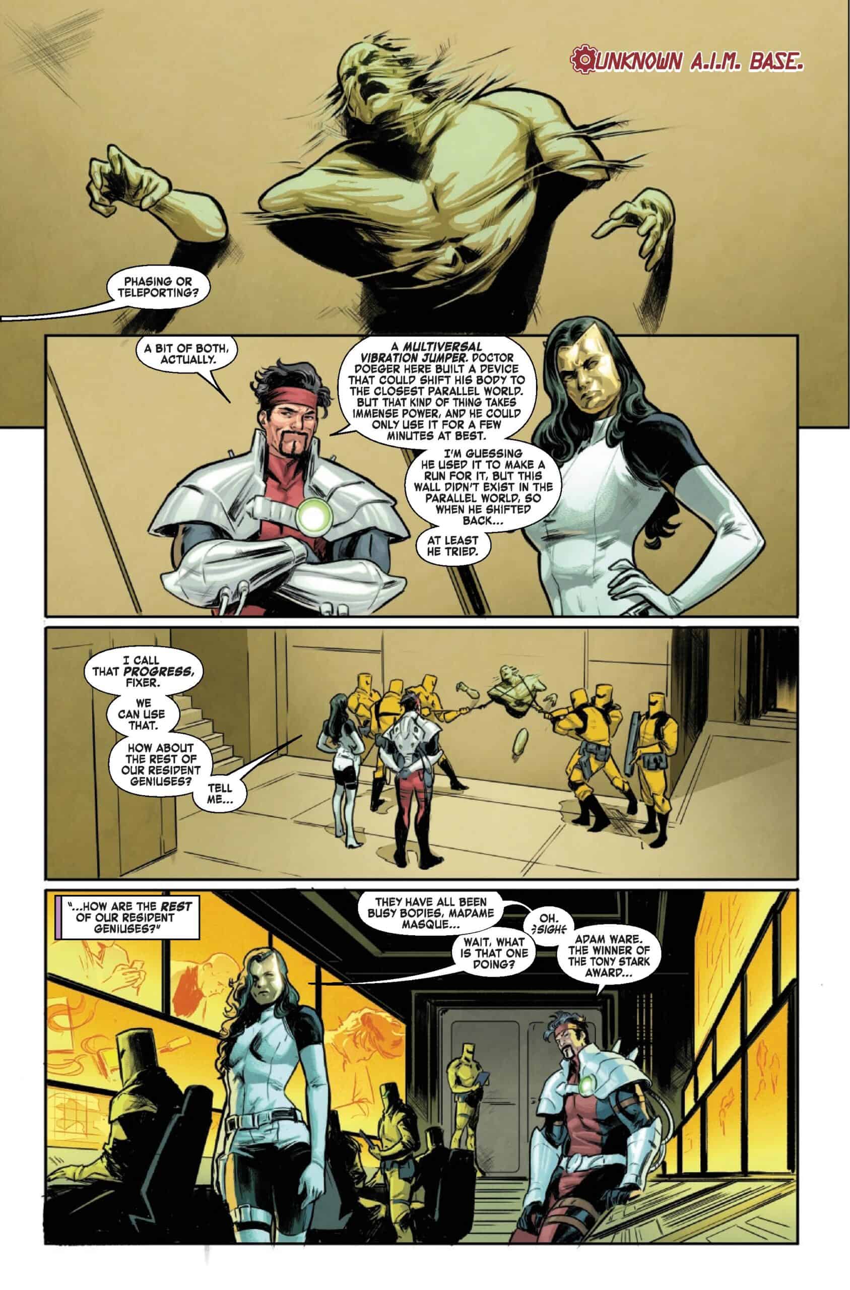 During an epic battle with MODOK, Iron Man learns the truth about A.I.M. and Madame Masque, leaving him with more questions than answers.
