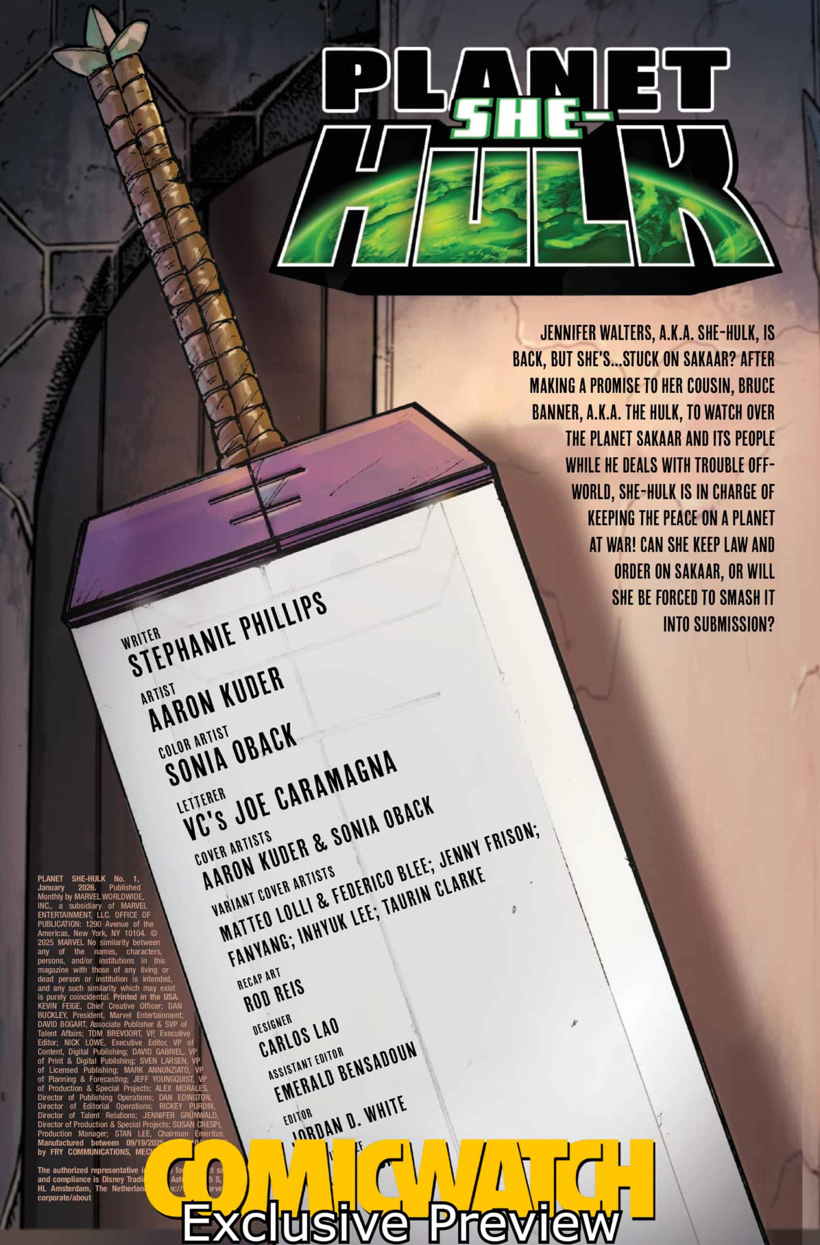 Jennifer Walters finds herself charge of keeping the peace on a planet at war in Planet She-Hulk #1, on shelves and digital platforms November 5, 2025, from Marvel Comics