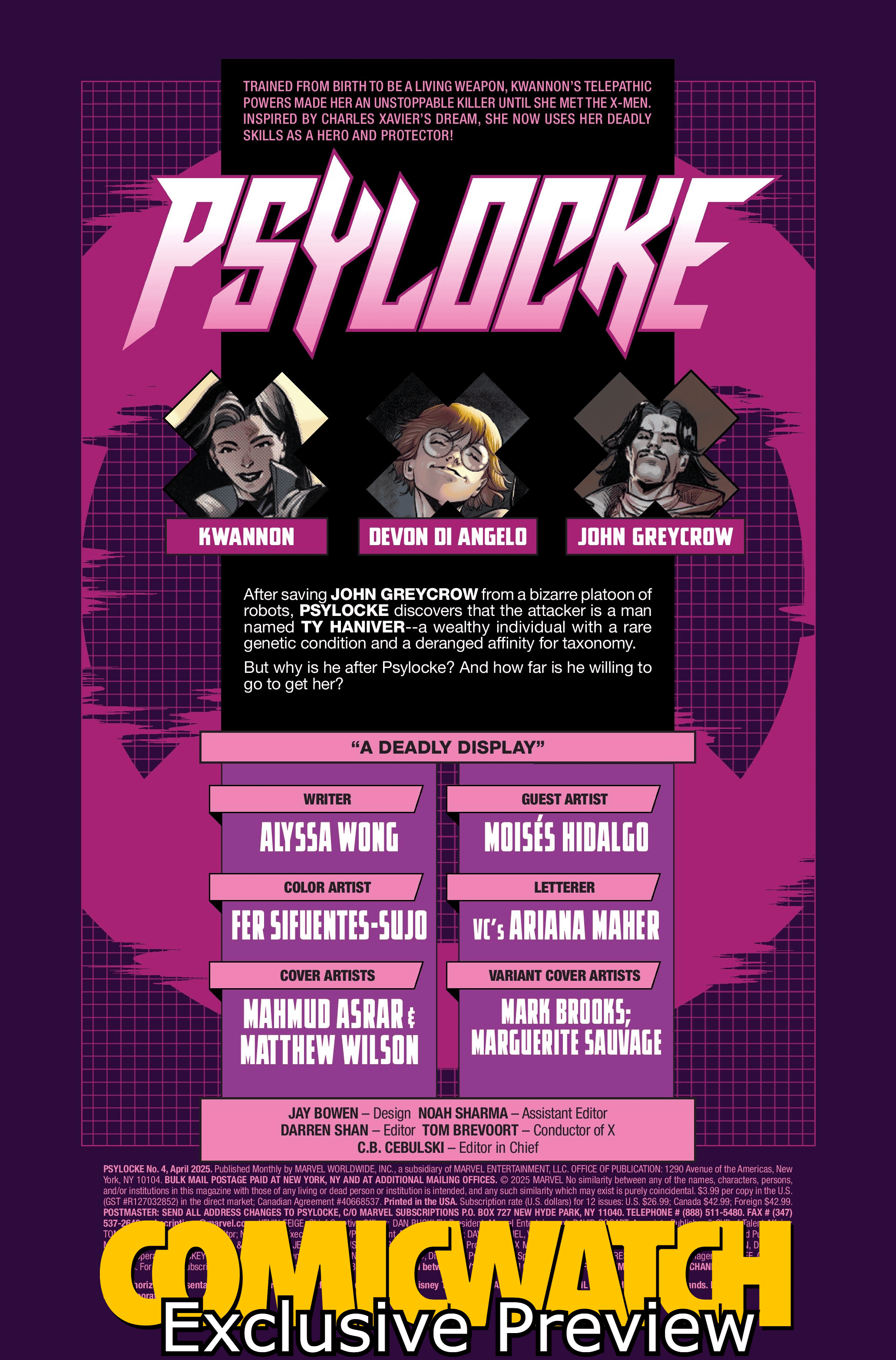 He’s been watching Psylocke for years. He knows just how to strike at her. But what does he want? And who is THE TAXONIMIST?