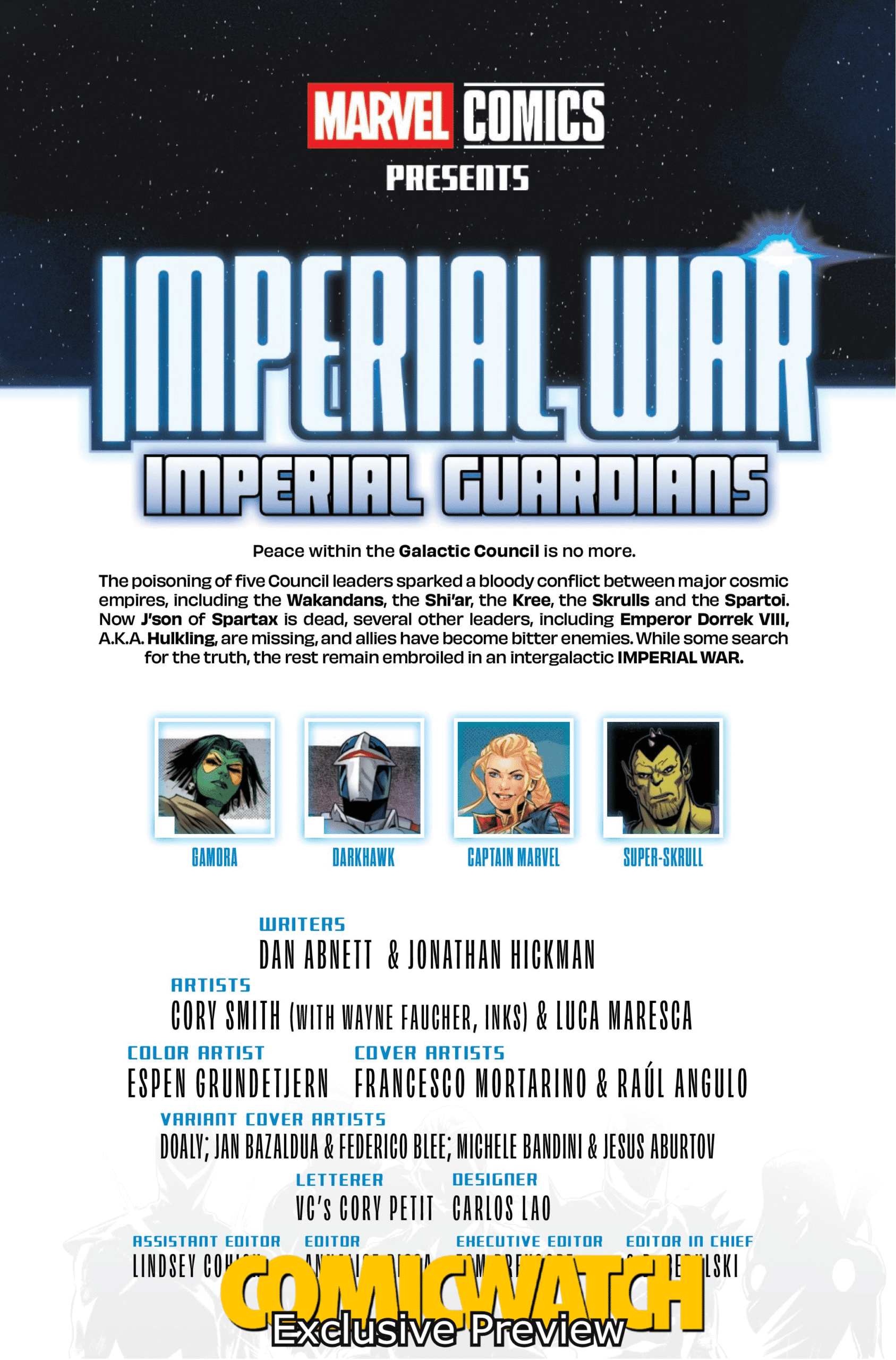 - IMPERIAL WAR: IMPERIAL GUARDIANS #1 – The Super-Skrull finds himself at the center of a seditious scheme with consequences that will be felt by the entire cosmos by Dan Abnett and Cory Smith