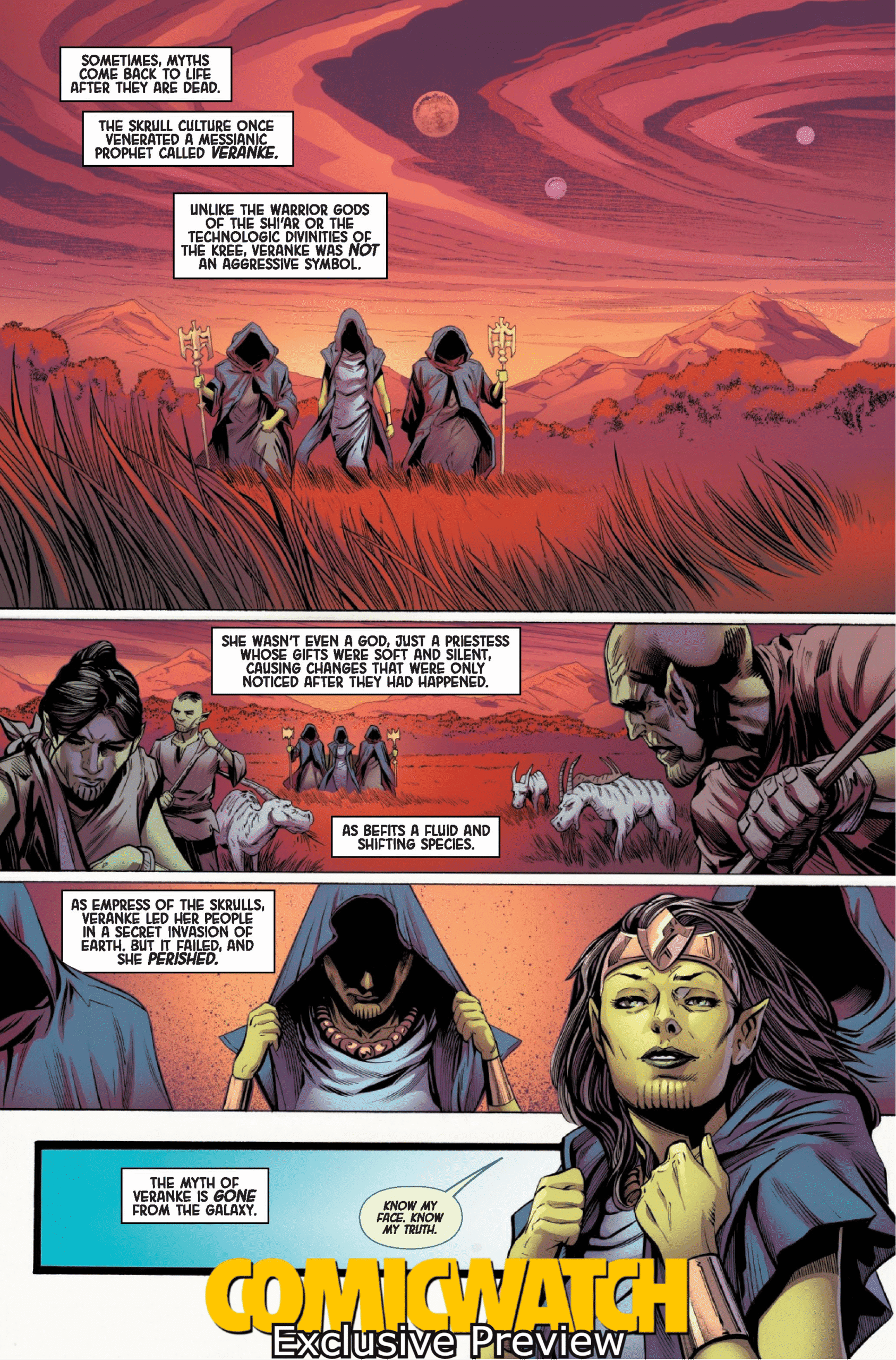 As the events of IMPERIAL explode in fatal fashion, the SUPER-SKRULL finds himself at the center of a seditious scheme with consequences that will be felt by the entire cosmos! But he’s not the only superpower looking for answers — an unlikely team is on the hunt to avert disaster before galactic order is lost for good!