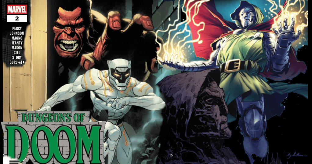 DUNGEONS OF DOOM is written by Phillip Kennedy Johnson (Incredible Hulk) and Benjamin Percy (Red Hulk) with art by Carlos Magno (Captain America), Robert Gill (Deadpool/Wolverine), Justin Mason (The Thing), and Georges Jeanty (Godzilla Vs. Avengers).